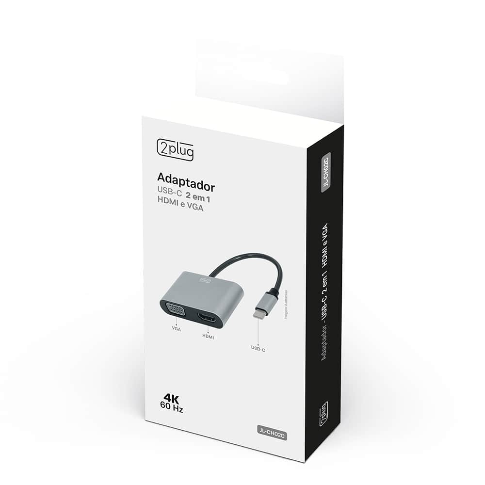 Adaptador USB-C 2 em 1, conexão HDMI e VGA, 4K60HZ JL-CH02-C, 2Plug - BT 1 UN