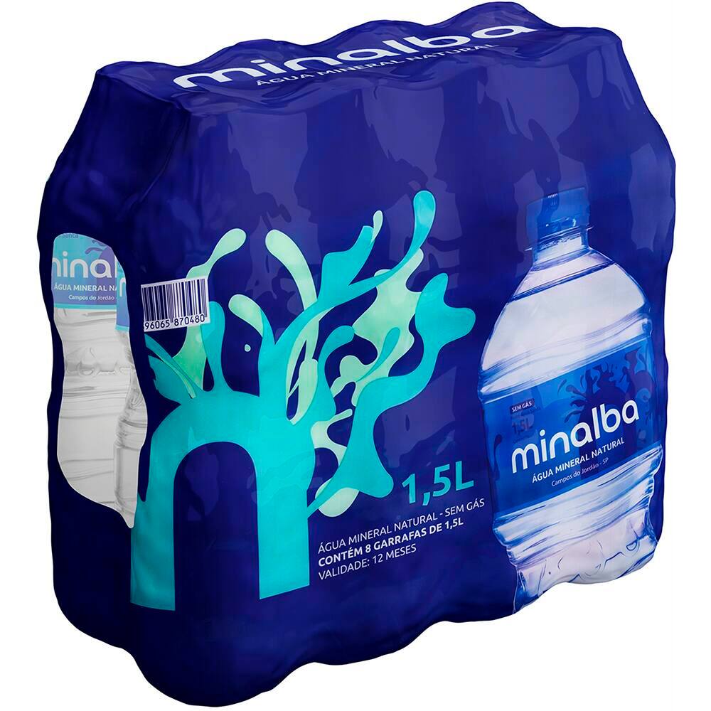 Água Mineral sem gás, 1,5L, Pack com 8 unidades, Minalba - FD 8 UN