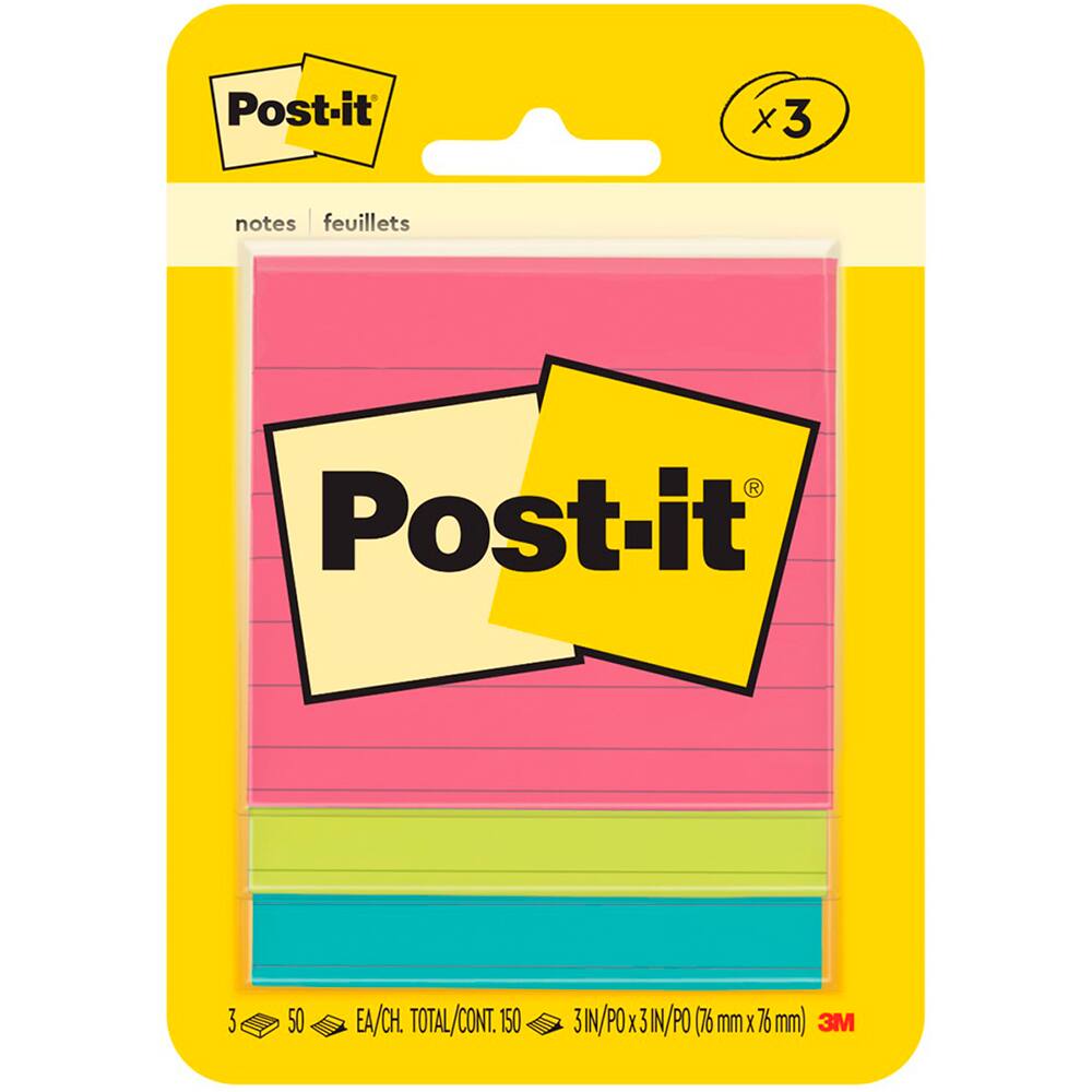 Bloco Adesivo Post-It, Pautado, 47,6mm X 47,6mm - 150 Folhas, PT 3 UN
