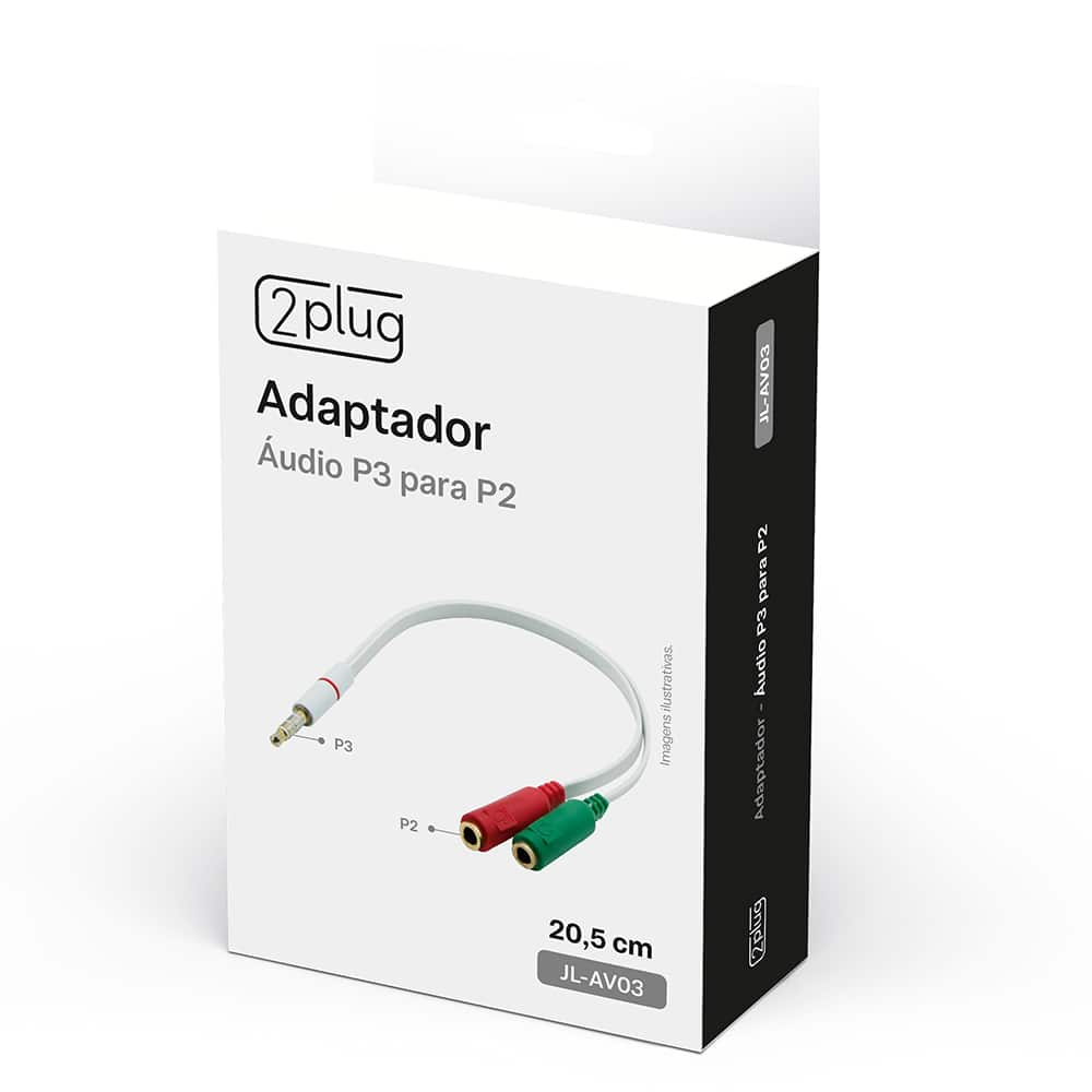 - Cabo adaptador áudio P3 para P2 áudio e P2 microfone