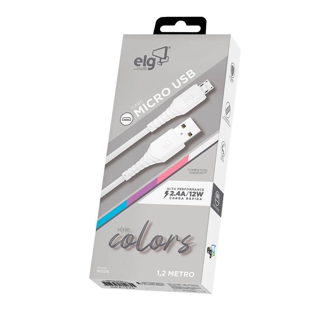 Cabo USB-A para micro USB 1,2m, Branco, M512W, Elg - CX 1 UN