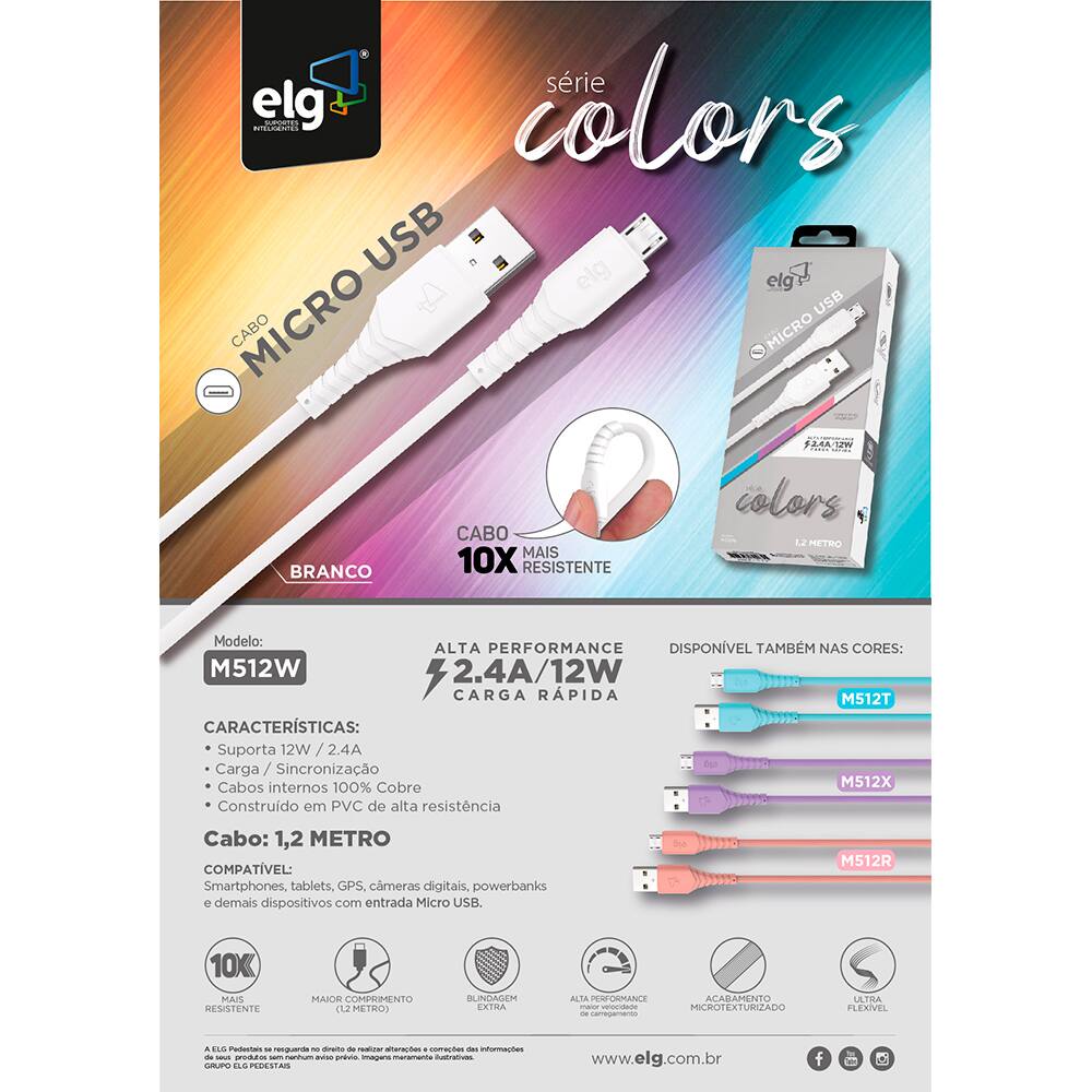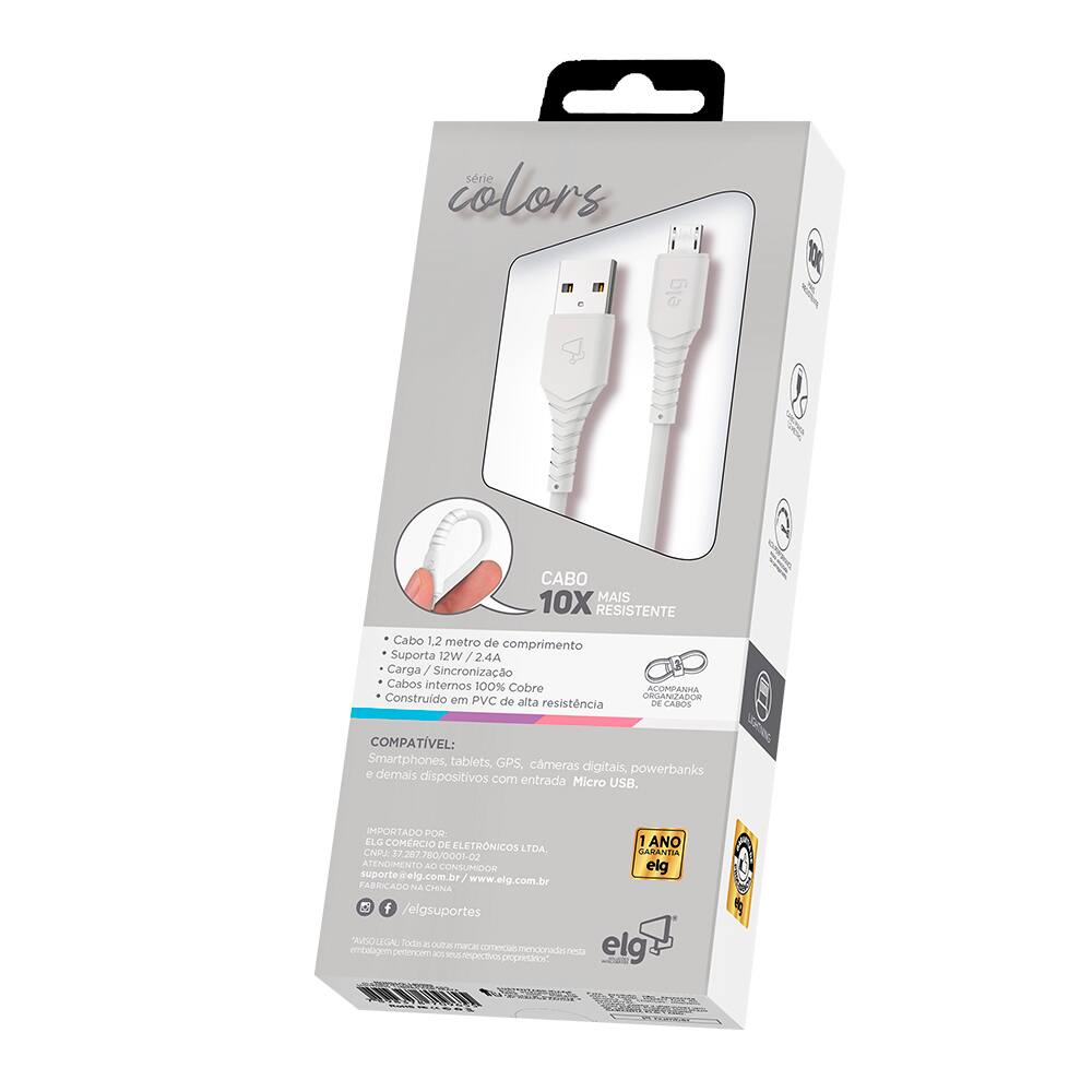 Além de sua funcionalidade, o design moderno e na cor branca combina perfeitamente com o seu estilo. Este cabo é mais do que um simples acessório, é um complemento indispensável para o seu dia a dia. Invista na durabilidade e performance que o Cabo USB-A da Elg oferece, e desfrute de uma experiência sem interrupções.