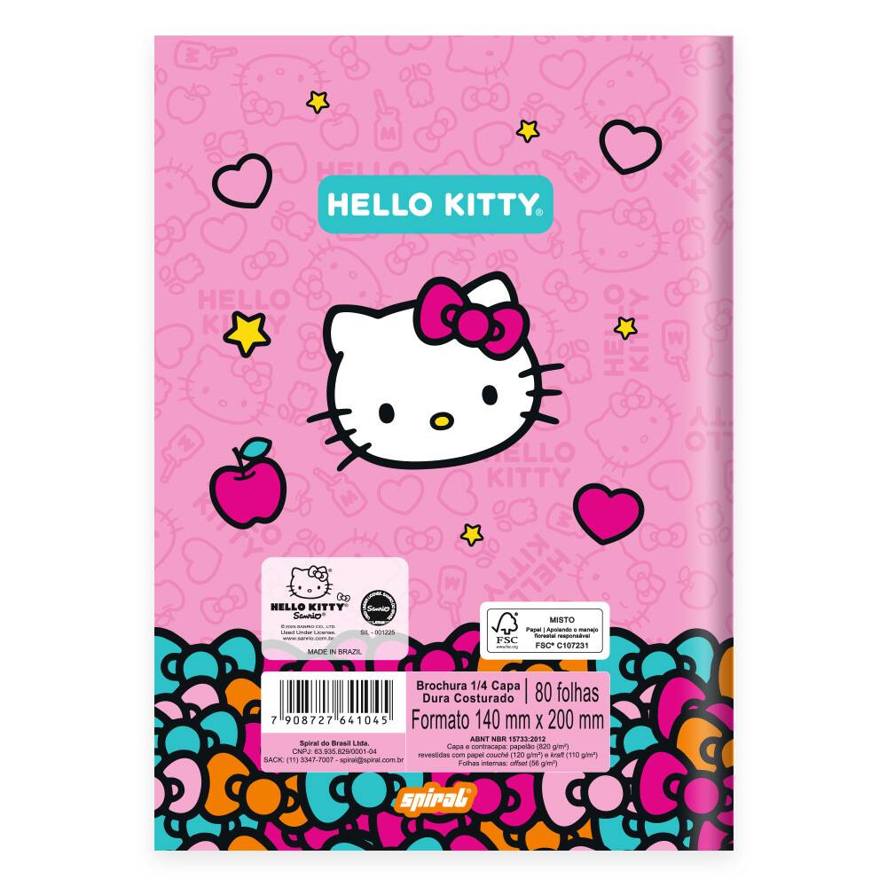 Caderno 1/4 , Capa dura, costurado, 80 folhas, Hello Kitty, 2641045, Spiral Hki - PT 1 UN