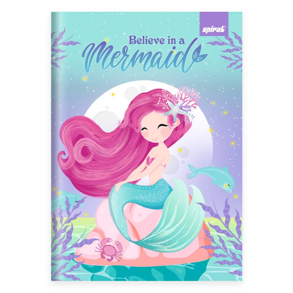Caderno 1/4 , Capa dura, costurado, 80 folhas, Sereia, 2638892, Spiral Ten - PT 1 UN