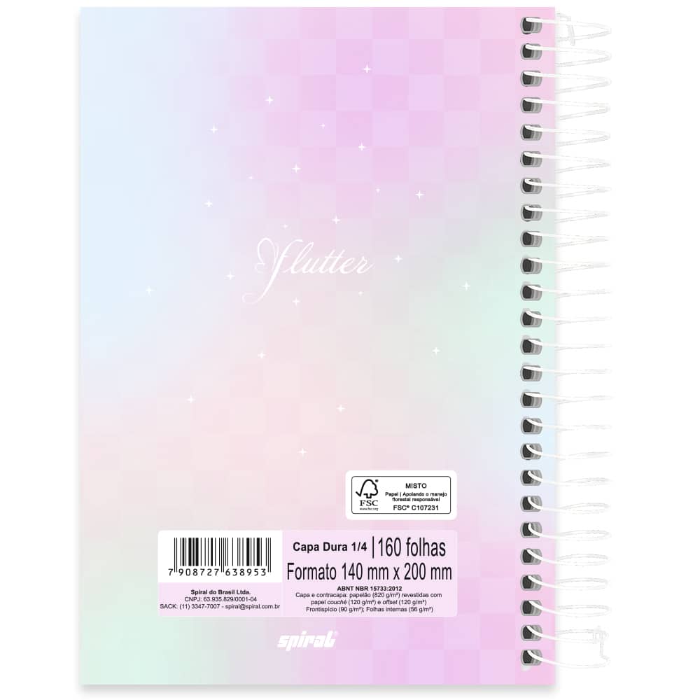 Caderno 1/4, Capa dura, Espiral, 160 folhas, Flutter, Spiral Flu - PT 1 UN
