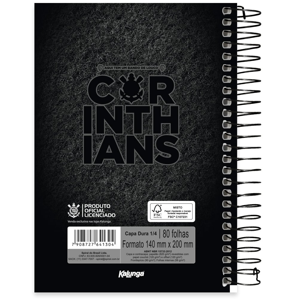 Caderno 1/4, Capa dura, Espiral, 80 folhas, Corinthians, 2641304, Spiral Sccp - PT 1 UN