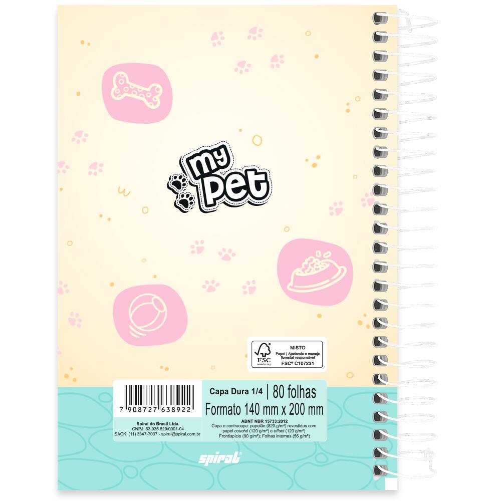 Caderno 1/4 Capa Dura, Espiral, 80 folhas, My Pet, 2638922, Spiral Pet - PT 1 UN