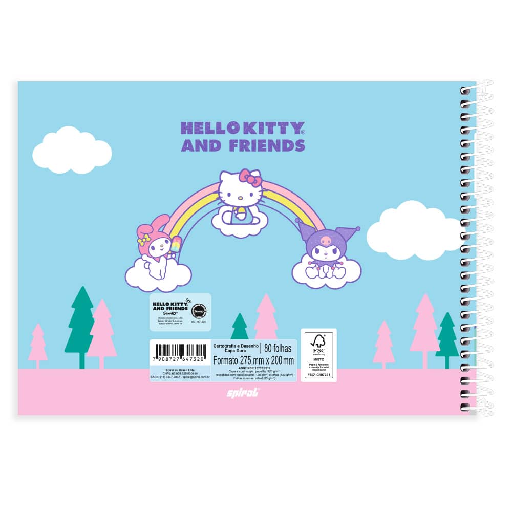Caderno de cartografia e desenho, Capa dura, 80 folhas, Hello Kitty e amigos, 2647320, Spiral Hka - PT 1 UN