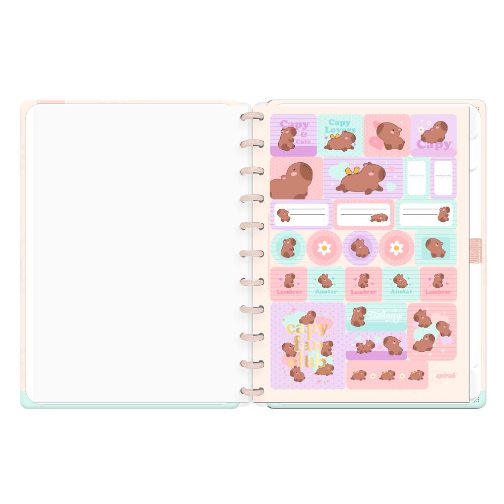 Deixe suas ideias fluírem com estilo e praticidade! O Caderno de Disco Capa Dura, tamanho G, com 80 folhas, é o companheiro ideal para suas anotações, seja em sala de aula, no escritório ou em casa. Com uma charmosa estampa de capivara, este caderno é a combinação perfeita de funcionalidade e design. Sua capa rígida não só protege suas anotações, mas também adiciona um toque de personalidade ao seu dia a dia.