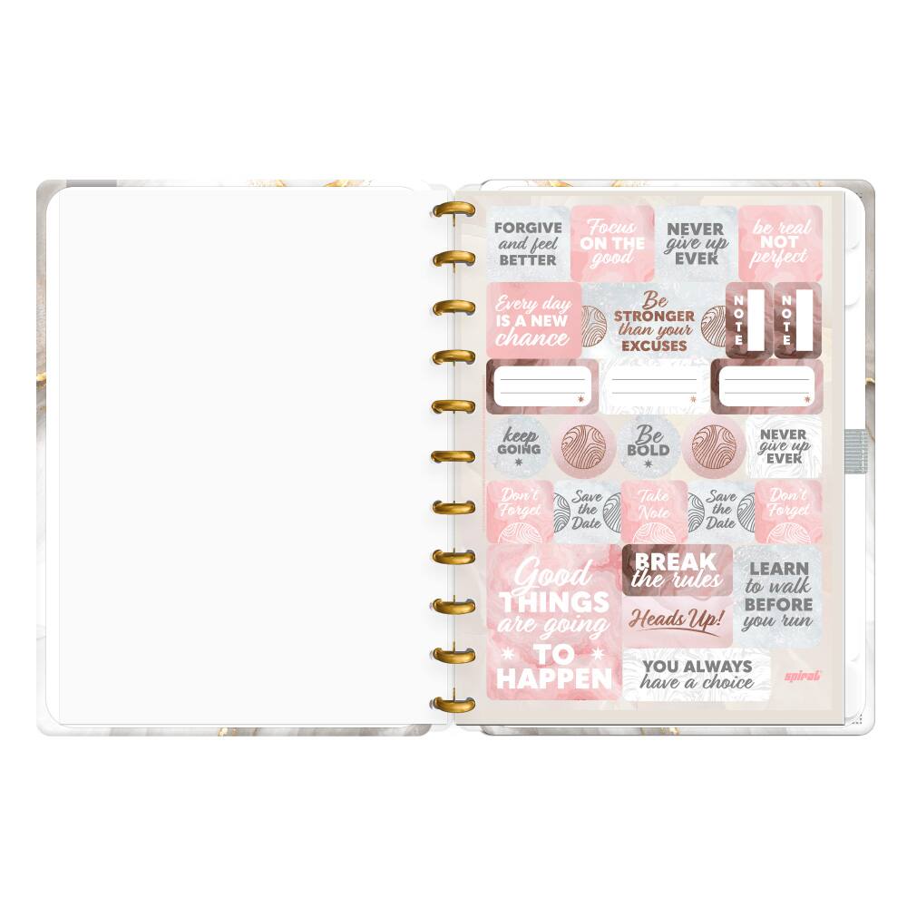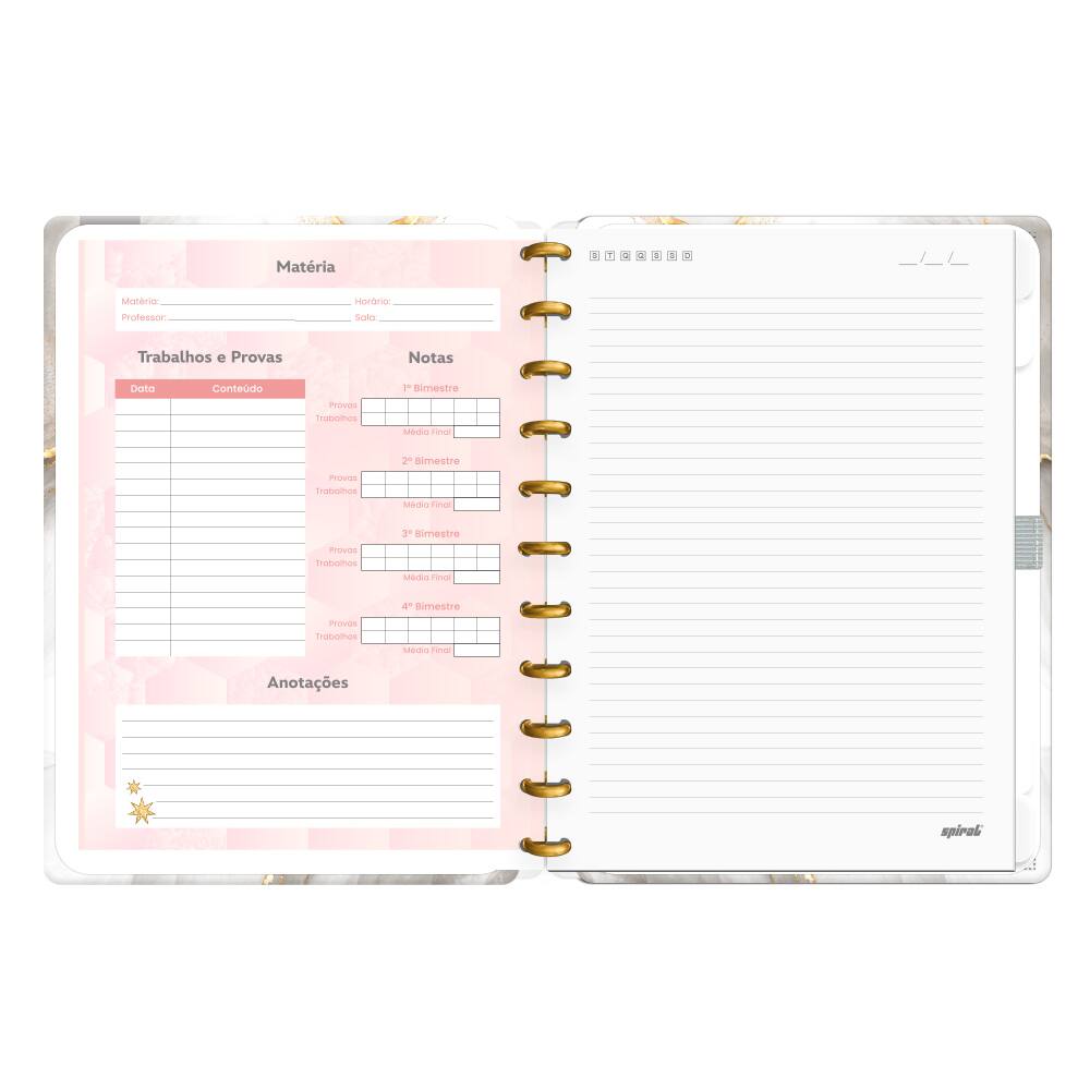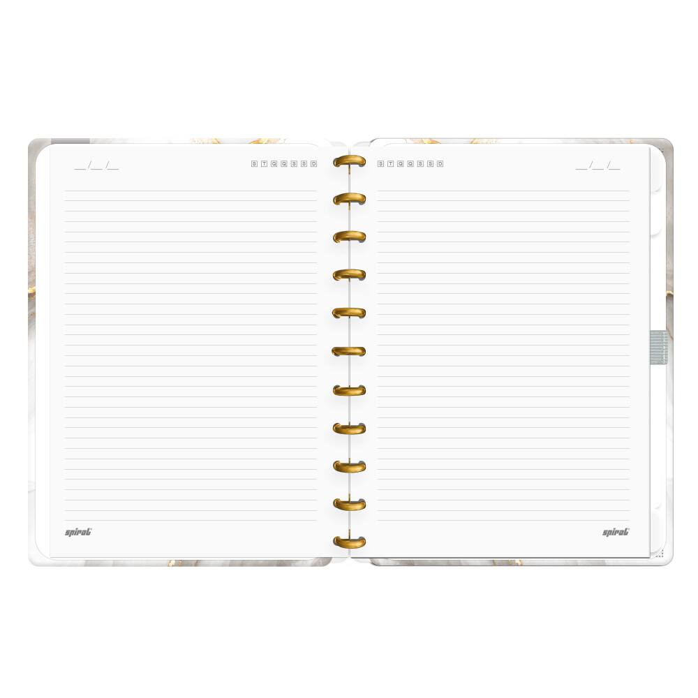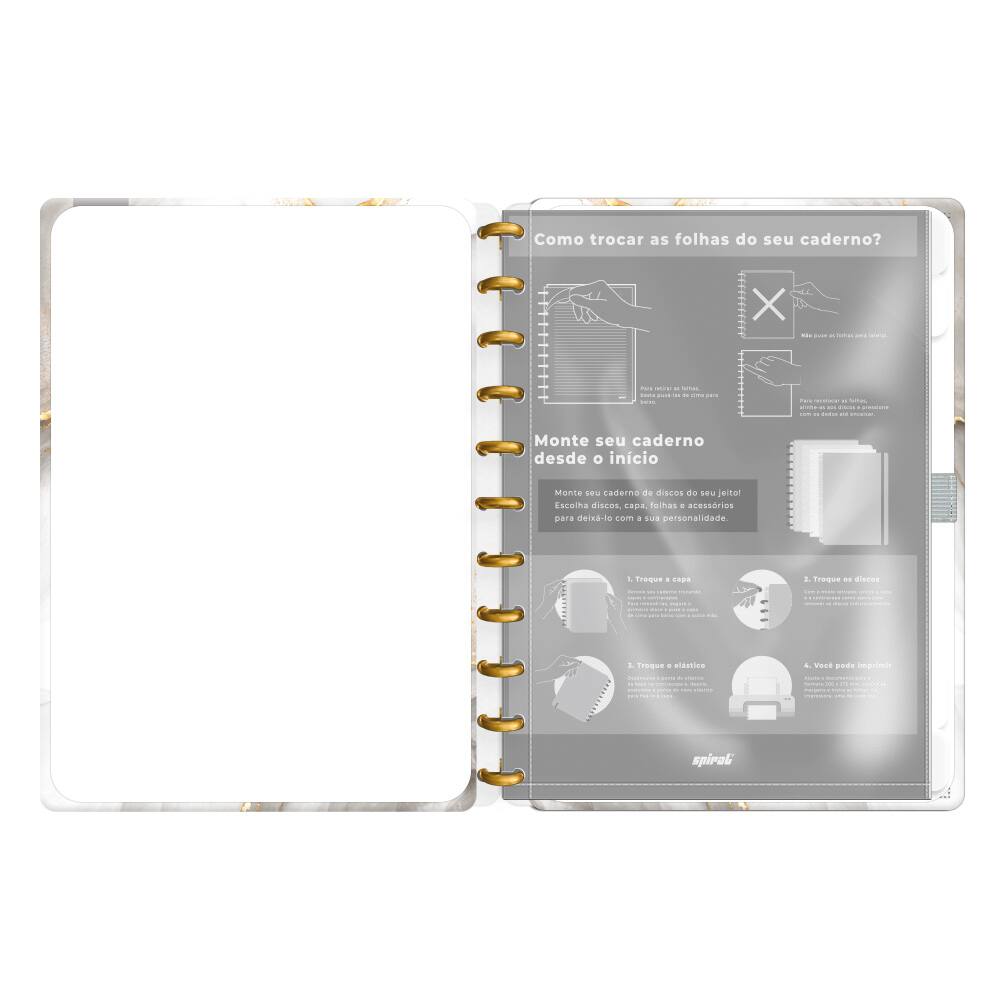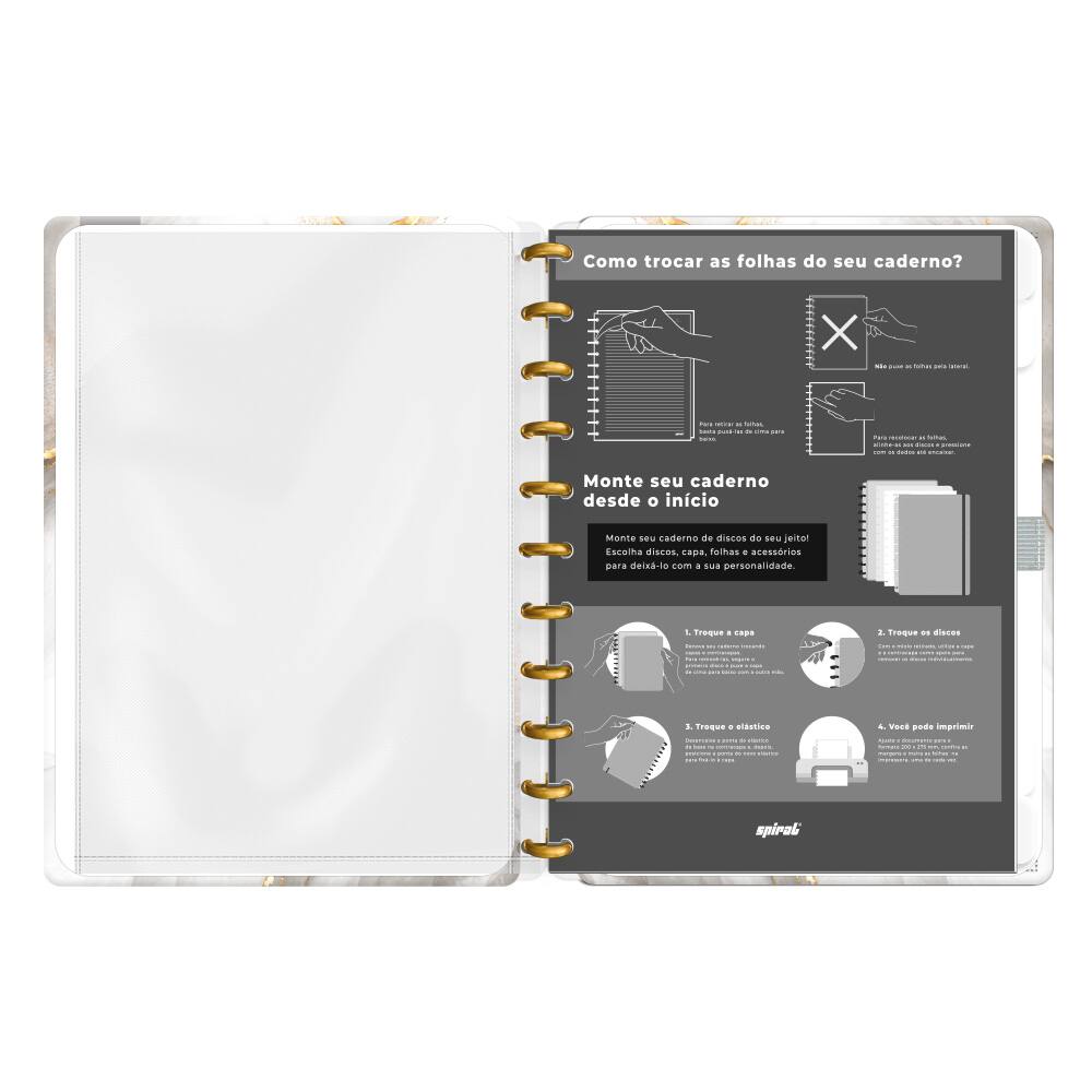 O formato G (grande) deste caderno é perfeito para quem gosta de ter liberdade para escrever à vontade ou fazer esboços e desenhos. Seja em reuniões, aulas ou momentos de inspiração, o Caderno de Disco Capa Dura Marmo se tornará seu companheiro indispensável, unindo praticidade e estética em um só produto.