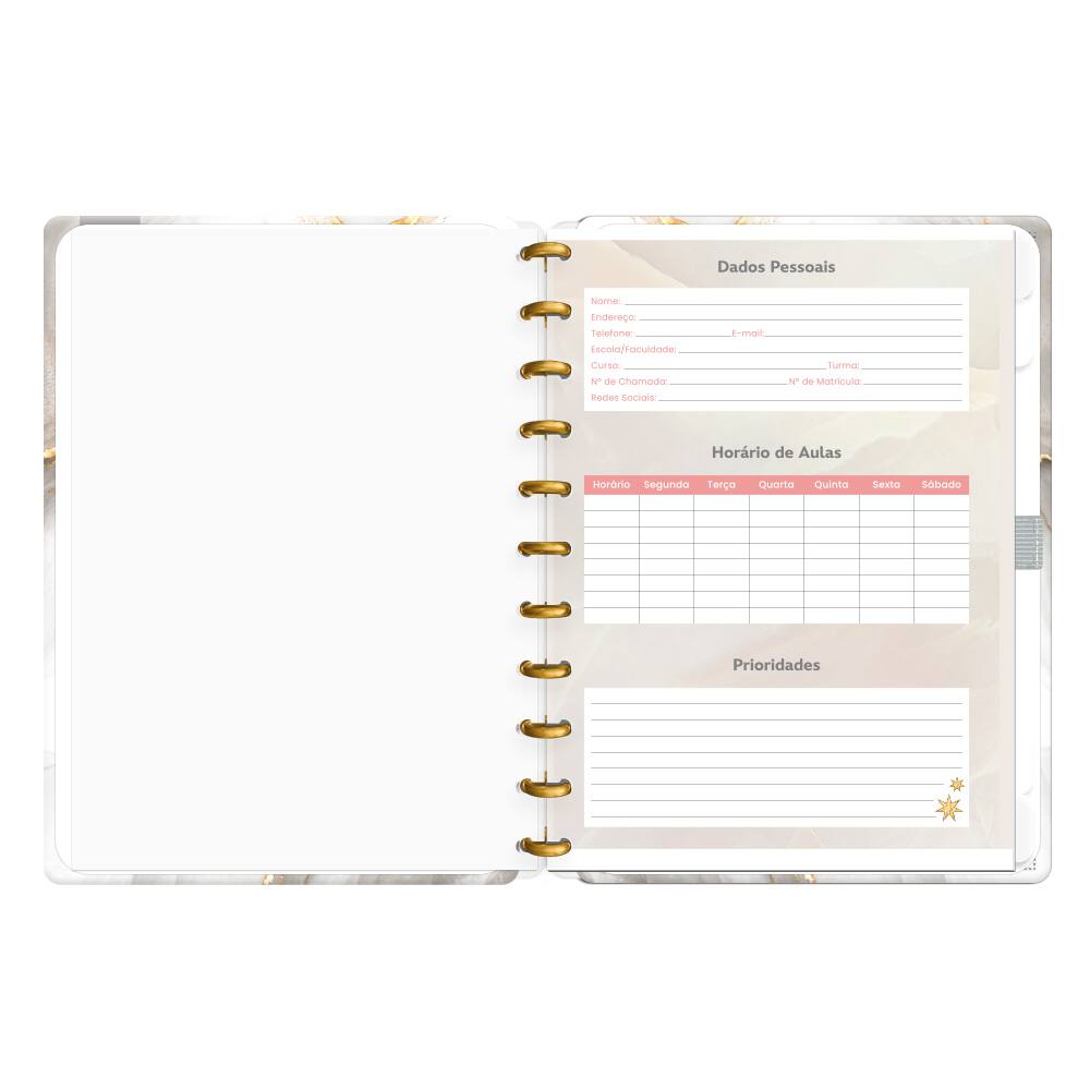 Apresentamos o elegante Caderno de Disco Capa Dura Marmo, uma verdadeira obra-prima que combina estilo e funcionalidade. Com uma capa branca adornada com detalhes em dourado, este caderno é perfeito para aqueles que buscam não apenas praticidade, mas também um toque de sofisticação em seus estudos ou anotações. Seu design luxuoso é ideal para profissionais, estudantes ou qualquer pessoa que deseje impressionar com seu material de escritório.
