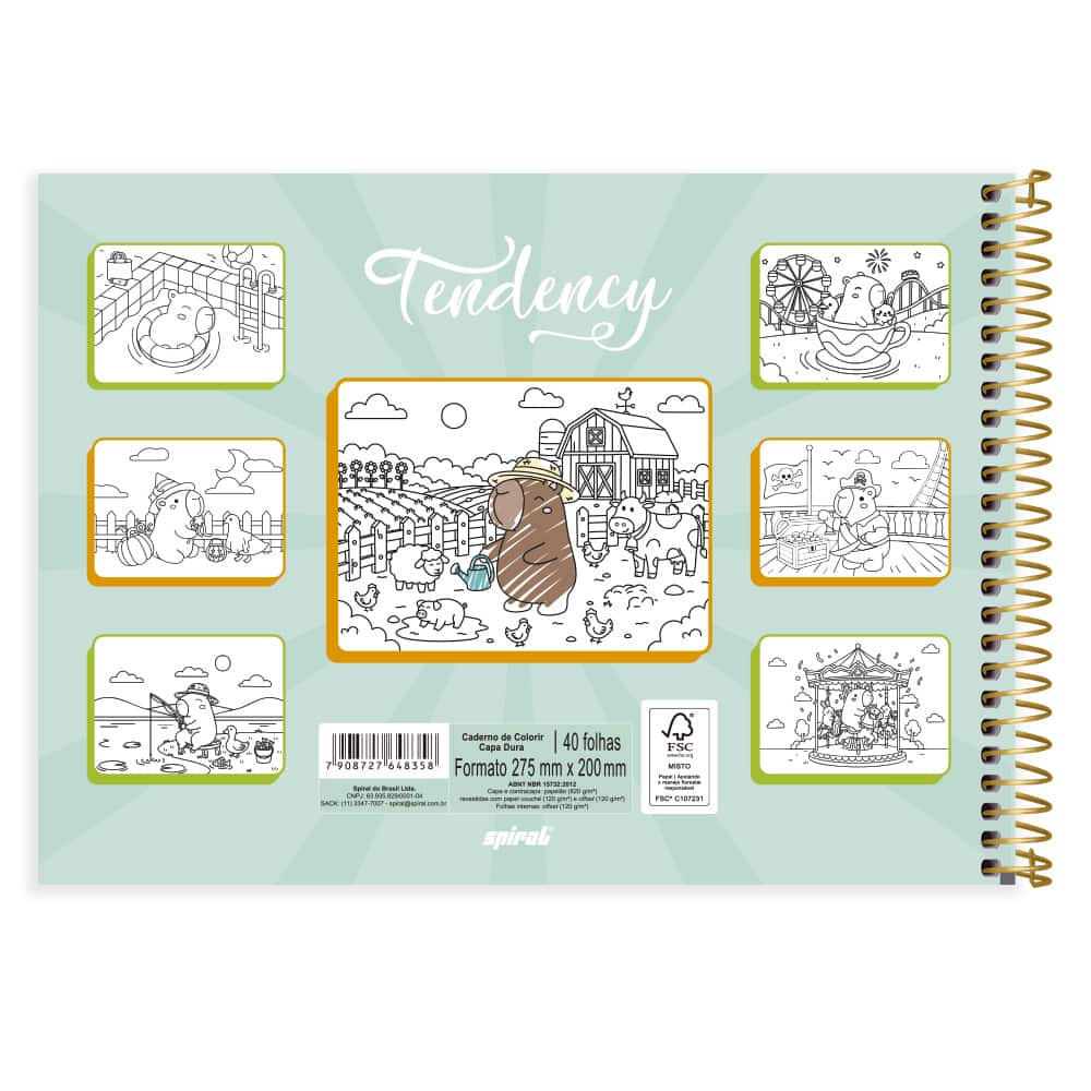 Caderno p/ colorir Capivara 40fls 2648358 Spiral Ten PT 1 UN