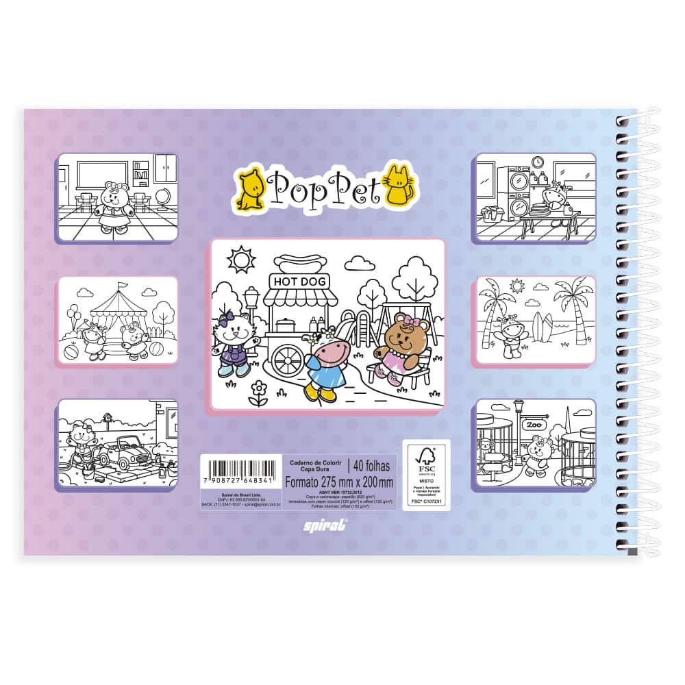 Caderno p/ colorir Pop Pet 40fls 2648341 Spiral Pop PT 1 UN