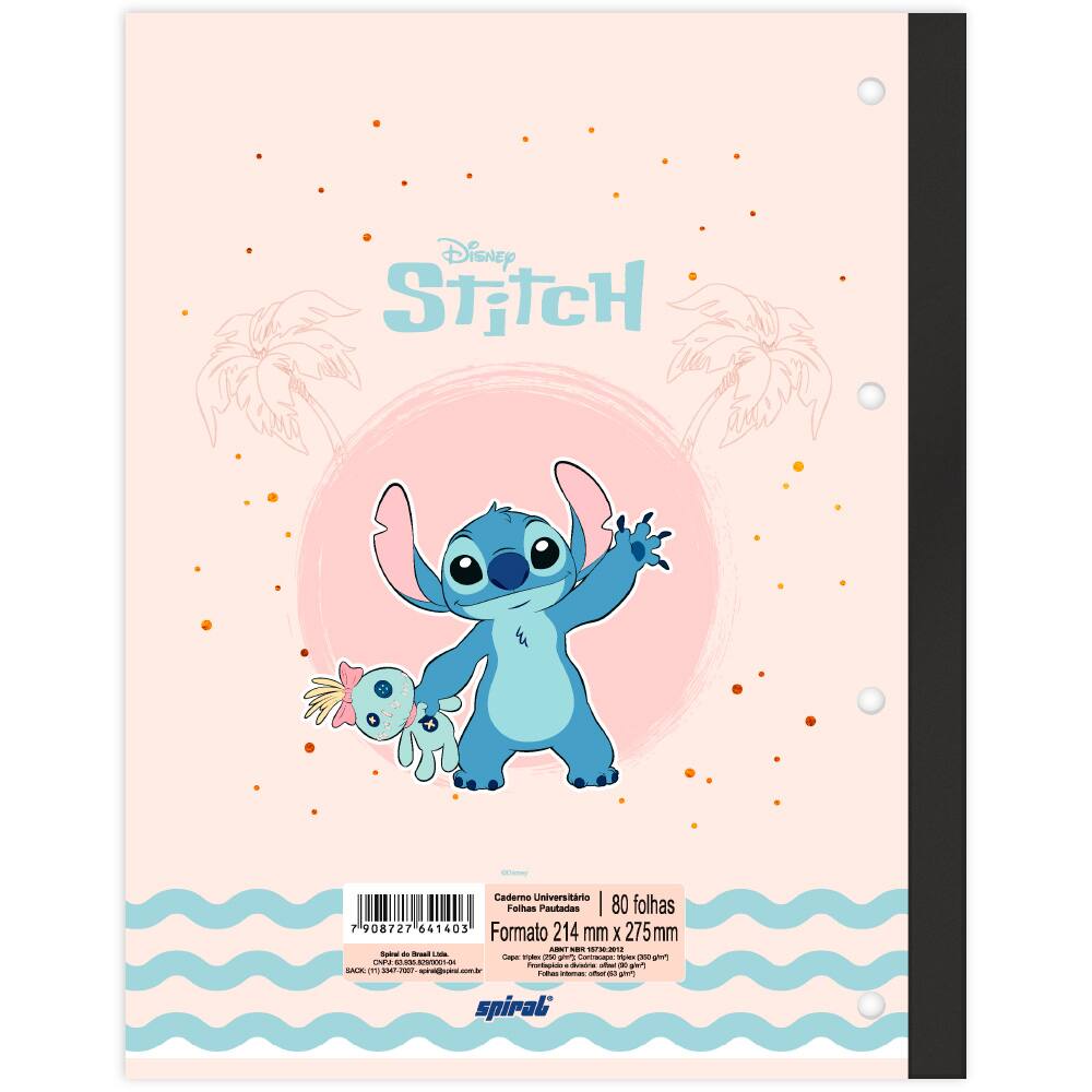 Caderno univ 1x1 80fls coladas wire. Stitch 2641403 Spiral Ds PT 1 UN