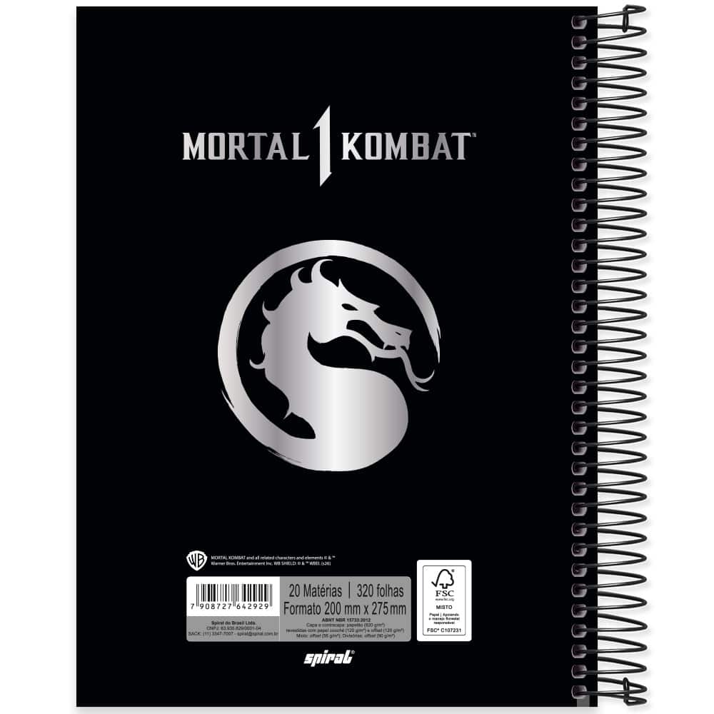 Caderno univ.capa dura 20x1 320fls M. Kombat 2642929 Spiral Mtk PT 1 UN