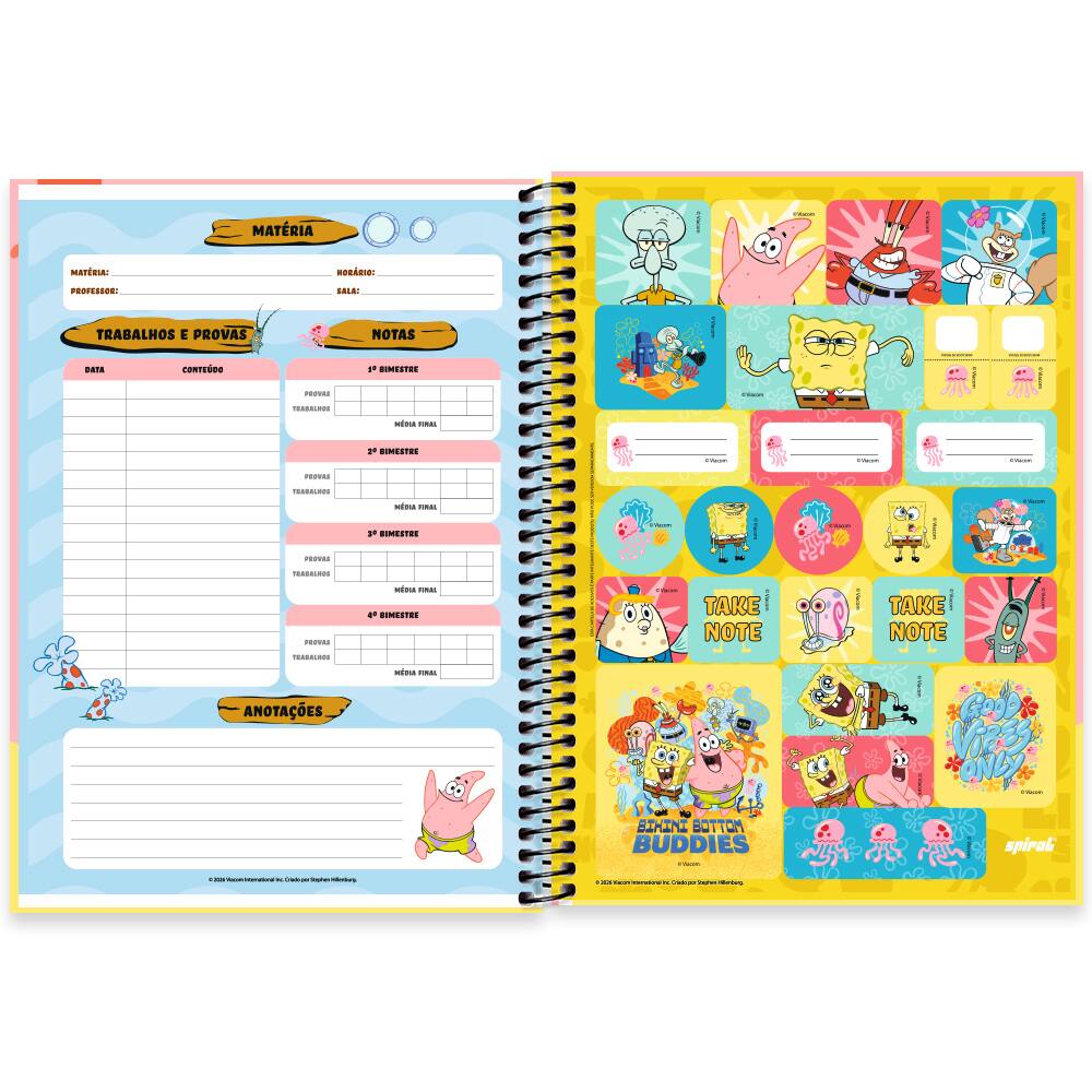 Caderno Universitário Capa Dura, 1 x 1, 80 Folhas, Bob Esponja, 2642585, Spiral Bob - PT 1 UN