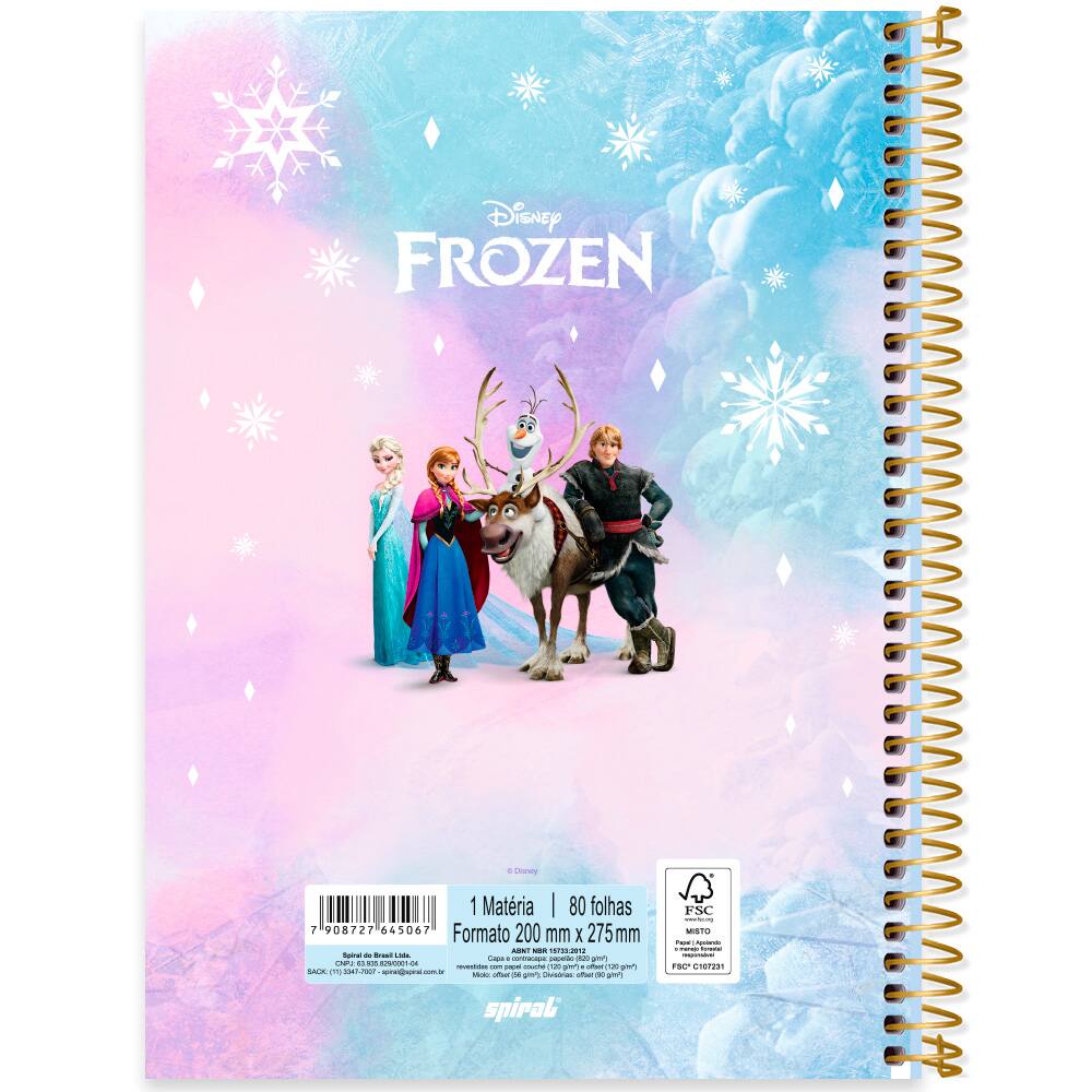 Caderno Universitário Capa Dura, 1 x 1, 80 folhas, Frozen, 2645067, Spiral Frz - PT 1 UN