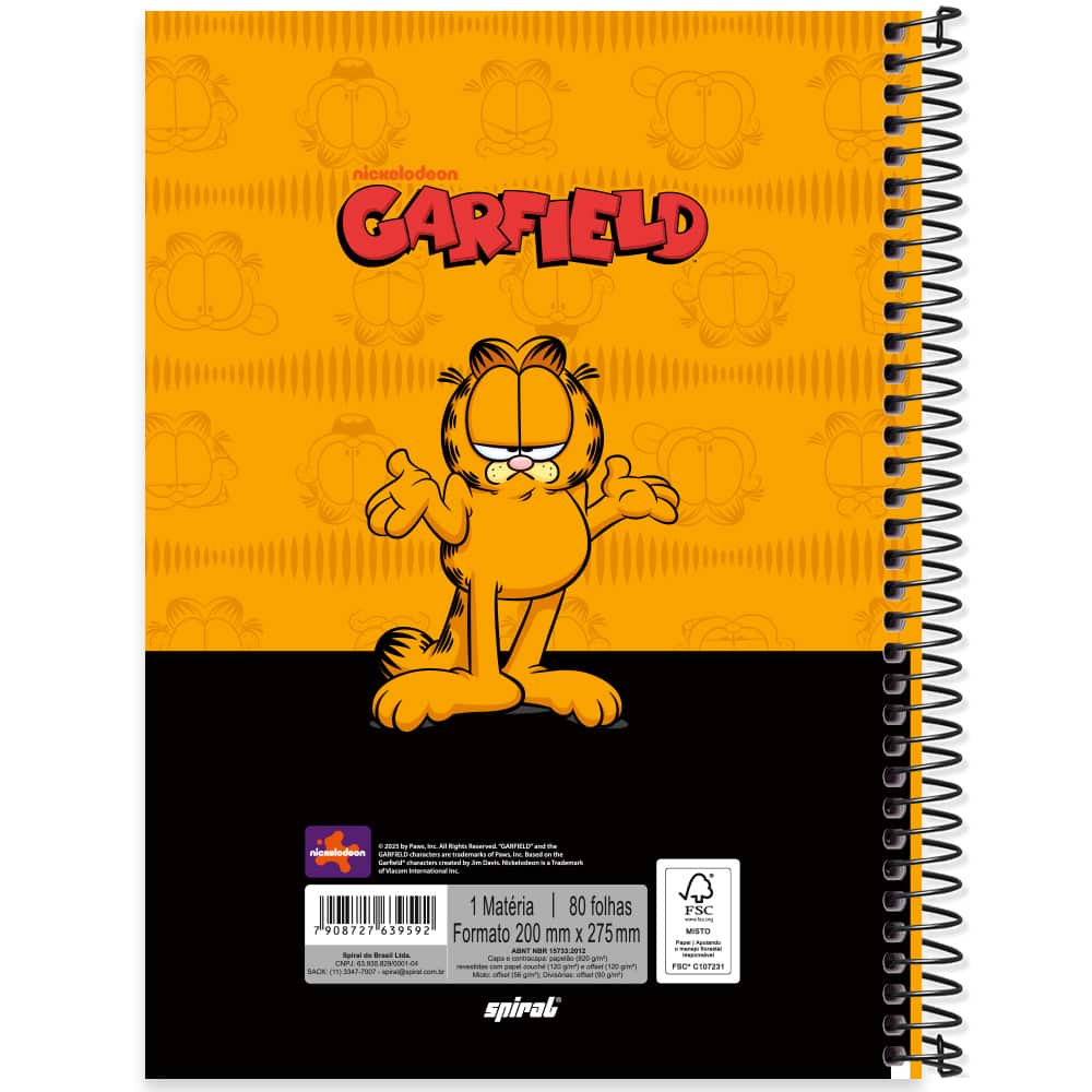 Caderno Universitário Capa Dura, 1 x 1, 80 Folhas, Garfield, 2639592, Spiral Gar - PT 1 UN