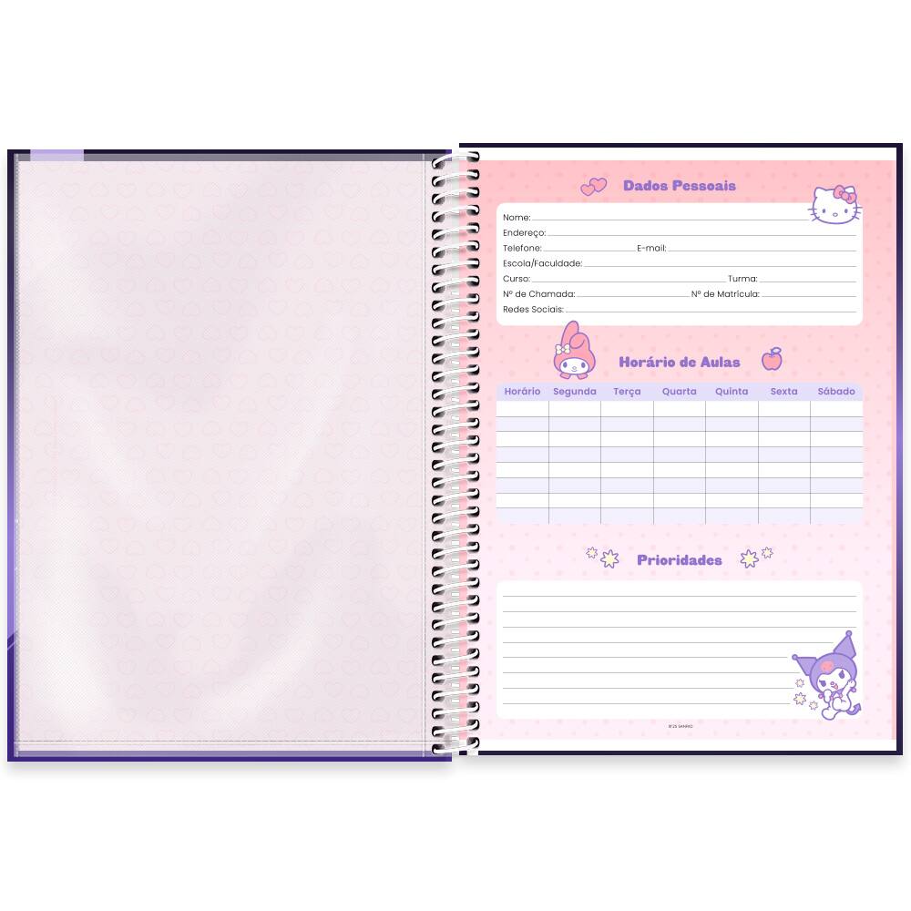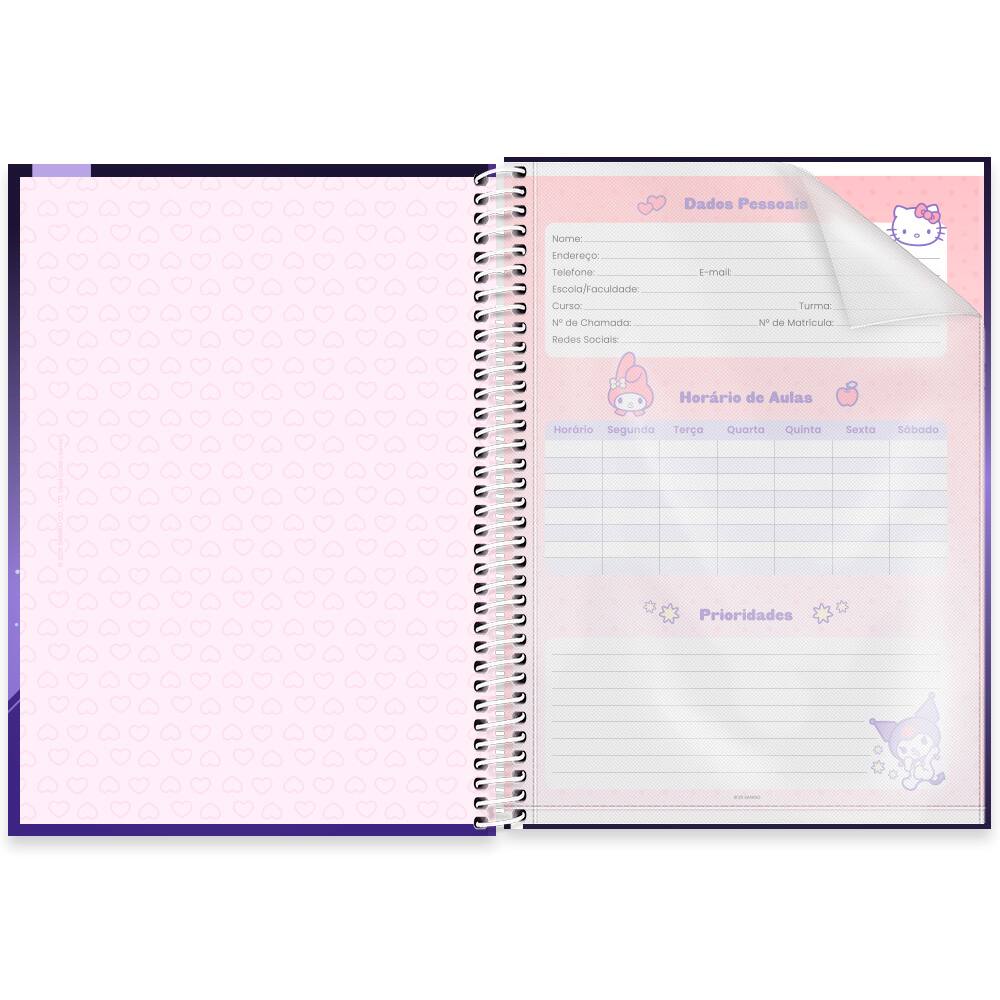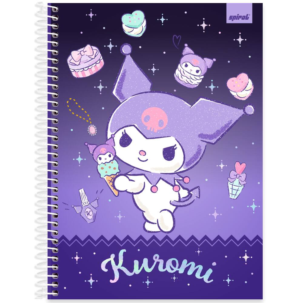Caderno Universitário Capa Dura, 1 x 1, 80 Folhas, Hello Kitty e amigos, Kuromi, 2647290, Spiral Hka - PT 1 UN