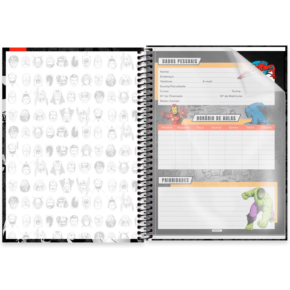 Seja você um fã incondicional dos super-heróis ou apenas um amante de design criativo, o Caderno Universitário Capa Dura