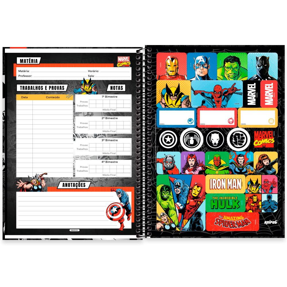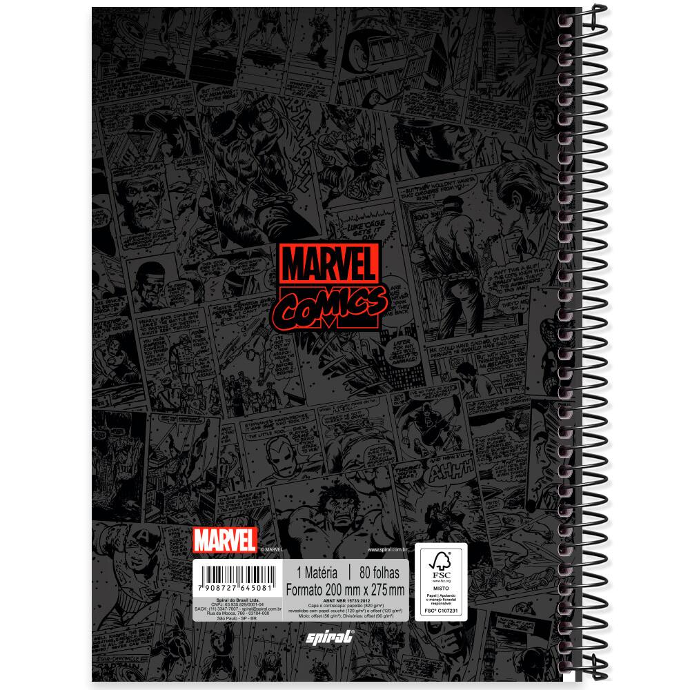 Caderno Universitário Capa Dura, 1 x 1, 80 Folhas, Marvel Comics, 2645081, Spiral Mv - PT 1 UN