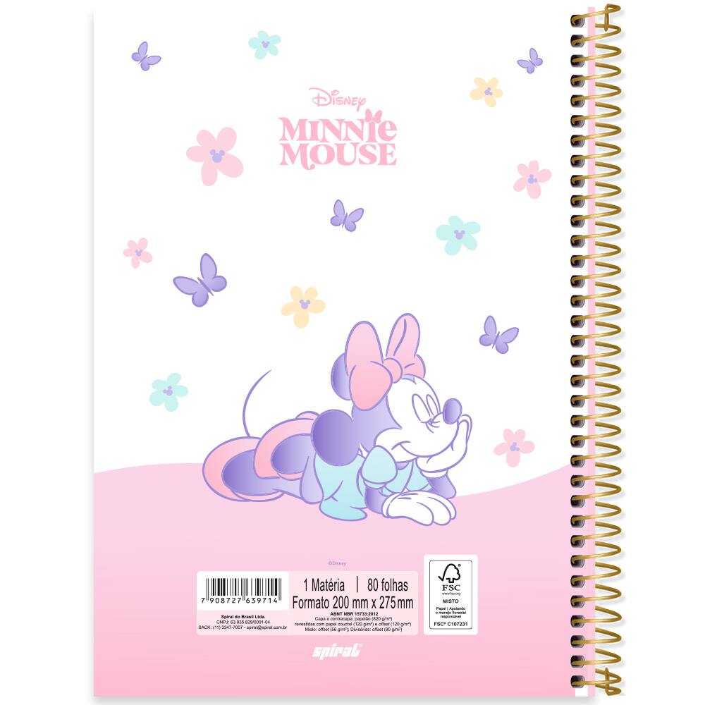 Caderno Universitário Capa Dura, 1 x 1, 80 folhas, Minnie Disney Style, 2639714, Spiral Mis - PT 1 UN