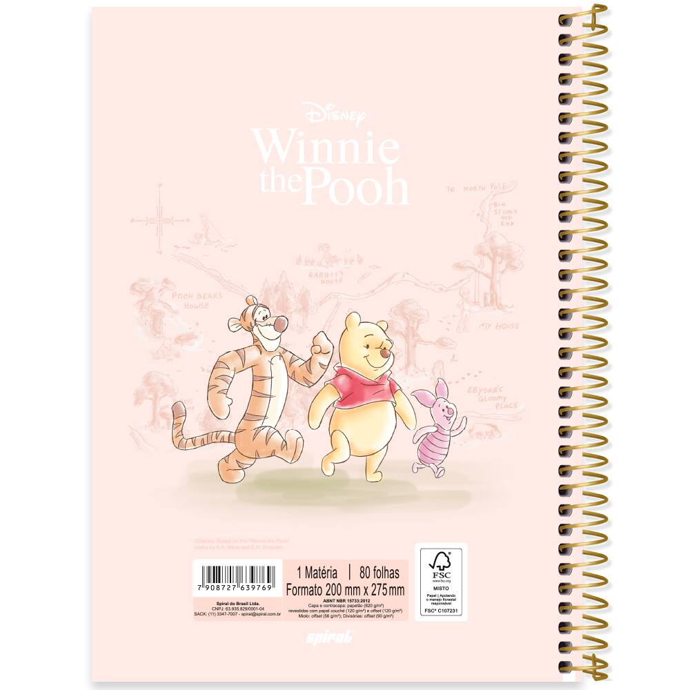 Caderno Universitário Capa Dura, 1 x 1, 80 folhas, Pooh, 2639769, Spiral Pooh - PT 1 UN