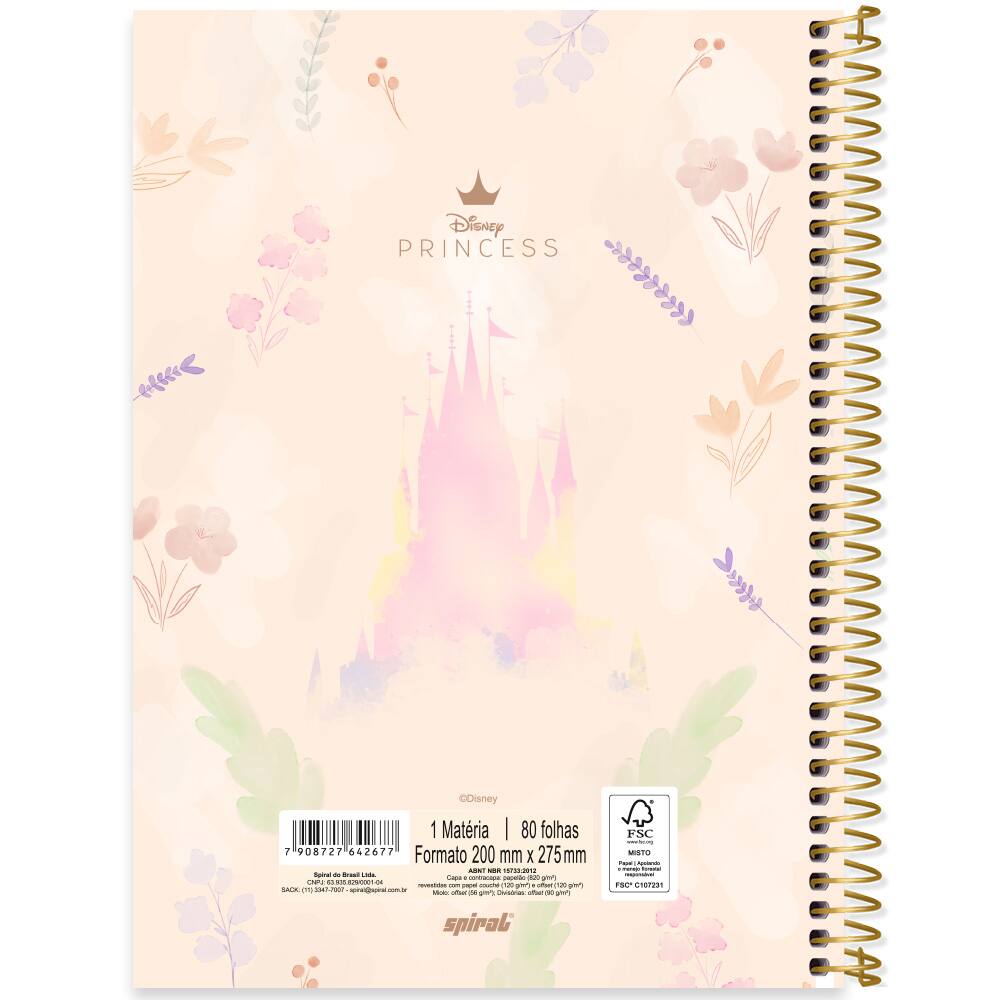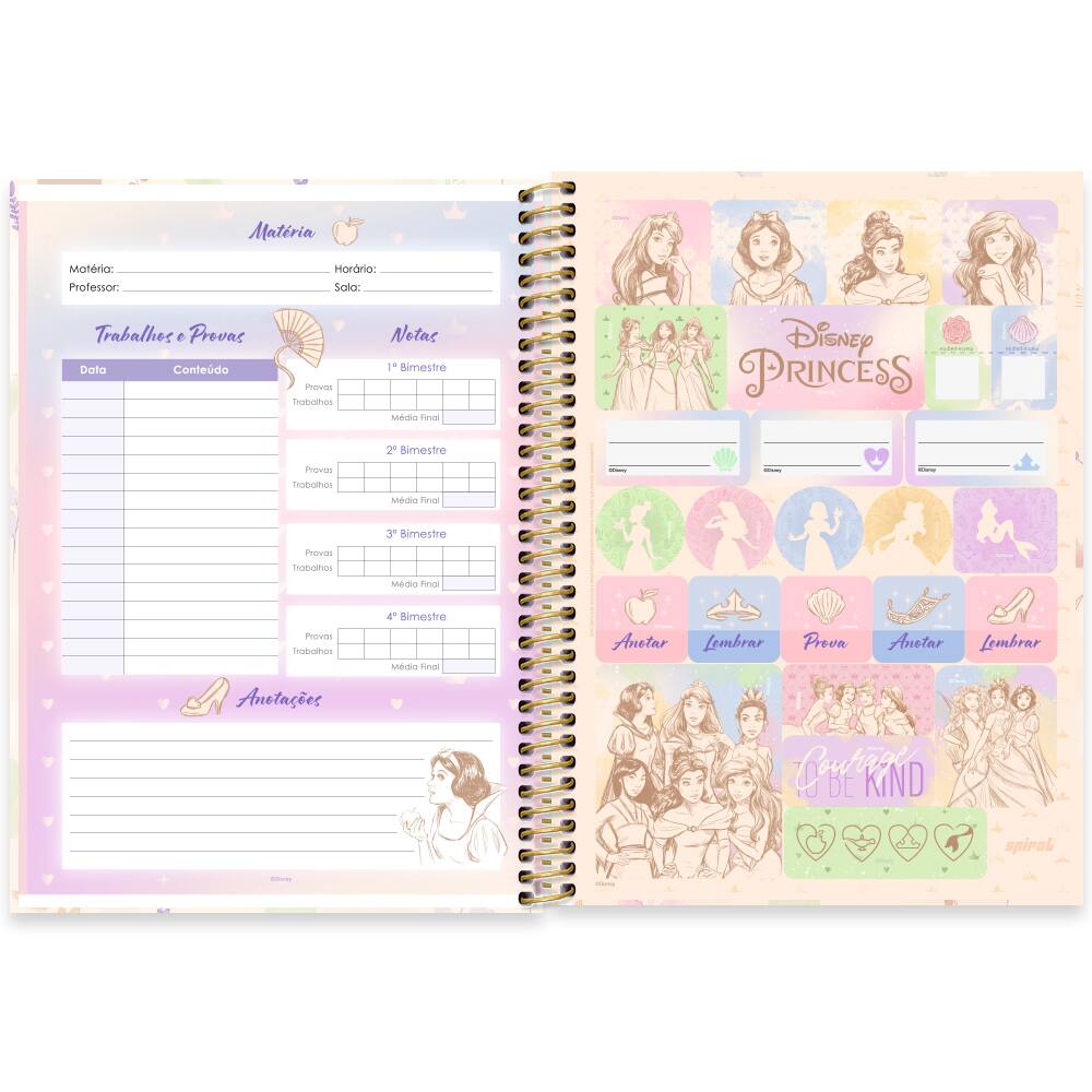 Caderno Universitário Capa Dura, 1 x 1, 80 Folhas, Princesas Disney, 2642677, Spiral Pn - PT 1 UN