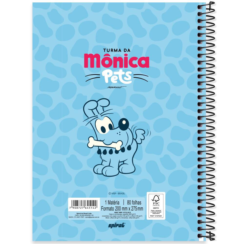 Caderno Universitário Capa Dura, 1 x 1, 80 folhas, Turma da Mônica Pets, 2645142, Spiral Tdp - PT 1 UN