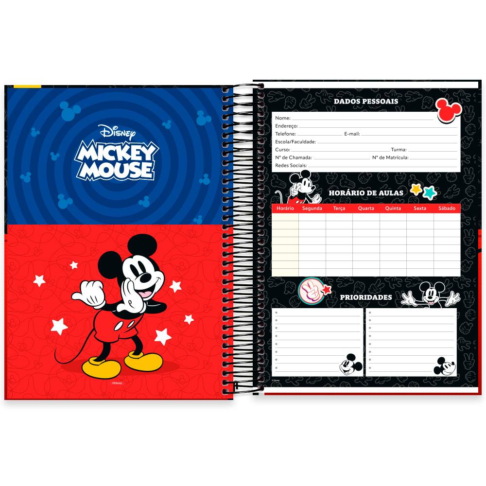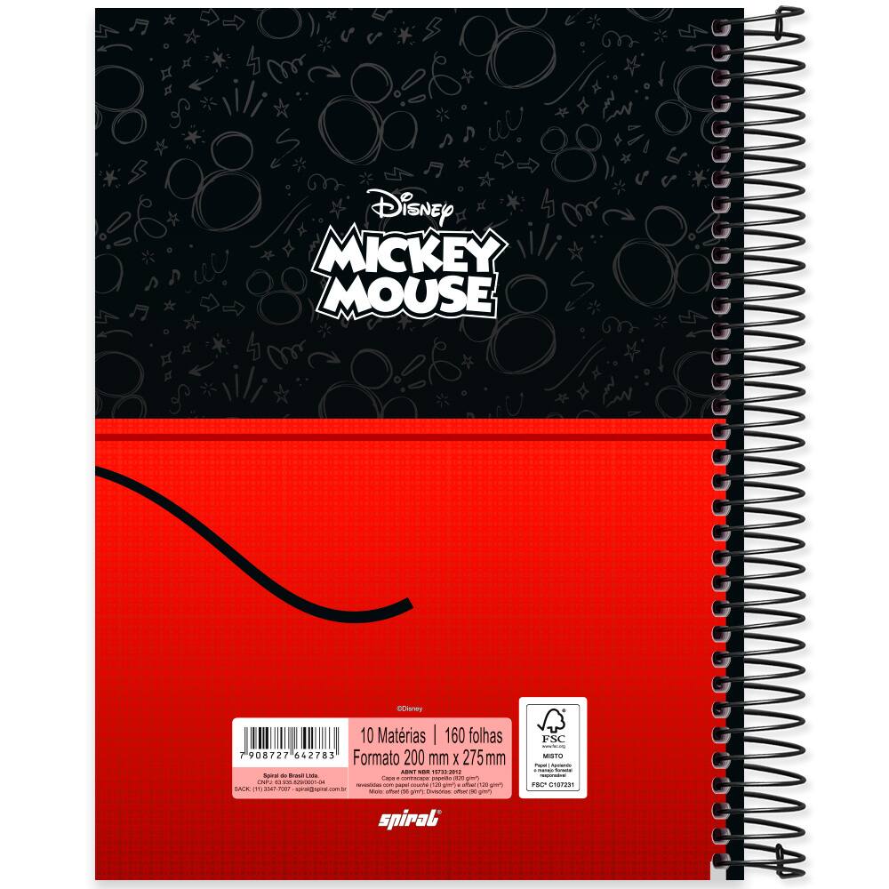 Caderno Universitário, Capa Dura, 10 x 1, 160 Folhas, Mickey Mouse Clássico, 2642783, Spiral Mk - PT 1 UN