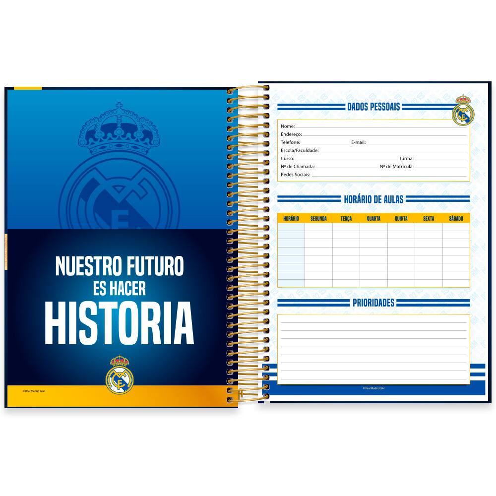 Caderno Universitário Capa Dura, 10x1, 160 Folhas, Real Madrid, 2649652, Spiral Rea - PT 1 UN
