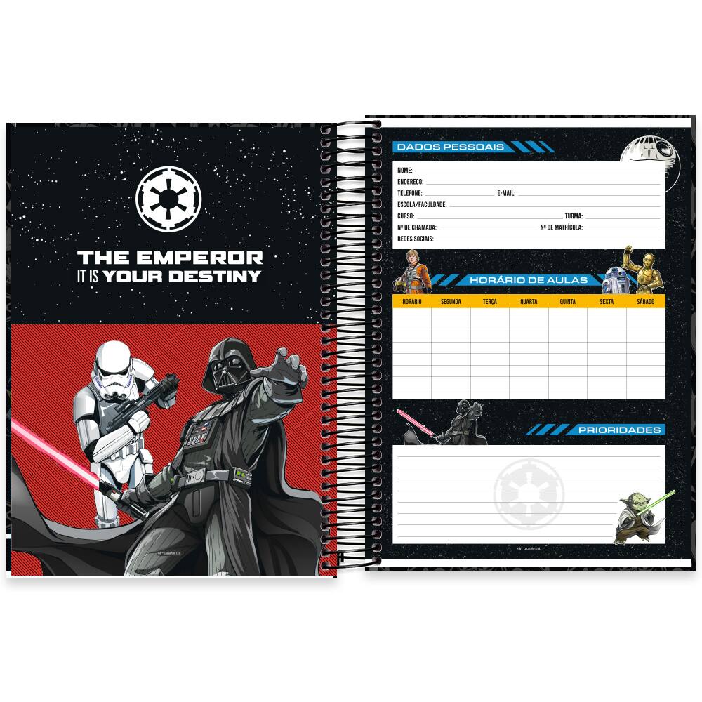 Imagine-se abrindo cada página e sendo transportado para um universo épico, onde seus pensamentos podem fluir livremente, como a Força que liga todos os seres. Ideal para universitários, artistas ou até mesmo para quem adora a saga, este caderno combina funcionalidade e inspiração em todas as suas 320 folhas, tornando a escrita uma experiência emocionante.