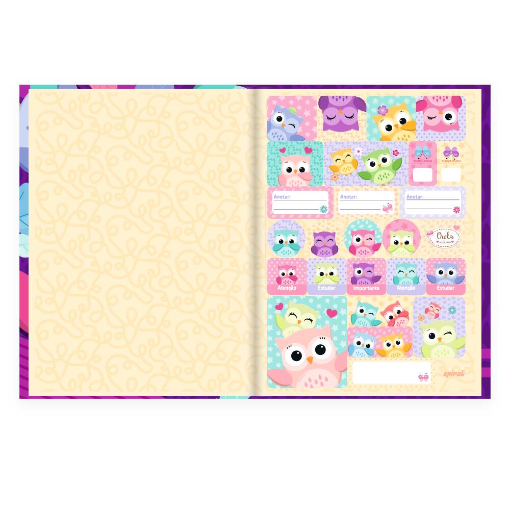 Caderno Universitário Capa Dura, Costurado, 80 folhas, Corujinhas, 2638649, Spiral Cor - PT 1 UN