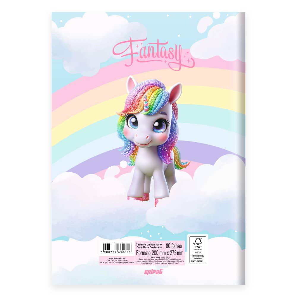 Caderno Universitário Capa Dura, Costurado, 80 folhas, Fantasy, 2638656, Spiral Fan - PT 1 UN