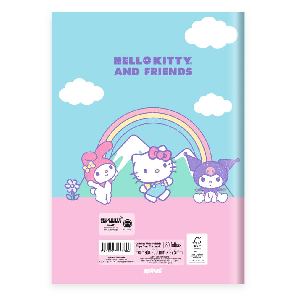 Caderno Universitário Capa Dura Costurado, 80 folhas, Hello Kitty e Amigos, 2647306, Spiral Hka - PT 1 UN