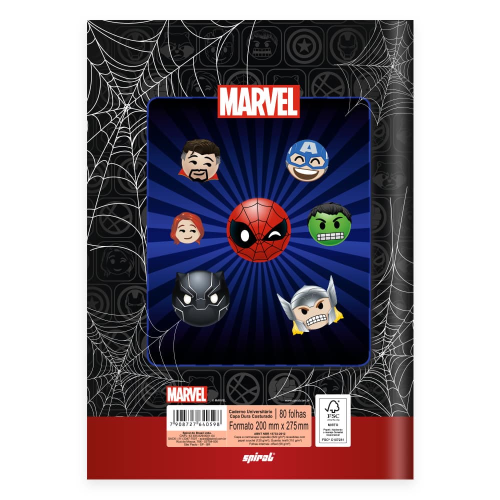Caderno Universitário, Capa Dura Costurado, 80 folhas, Marvel Emoji, 2640598, Spiral Mve - PT 1 UN