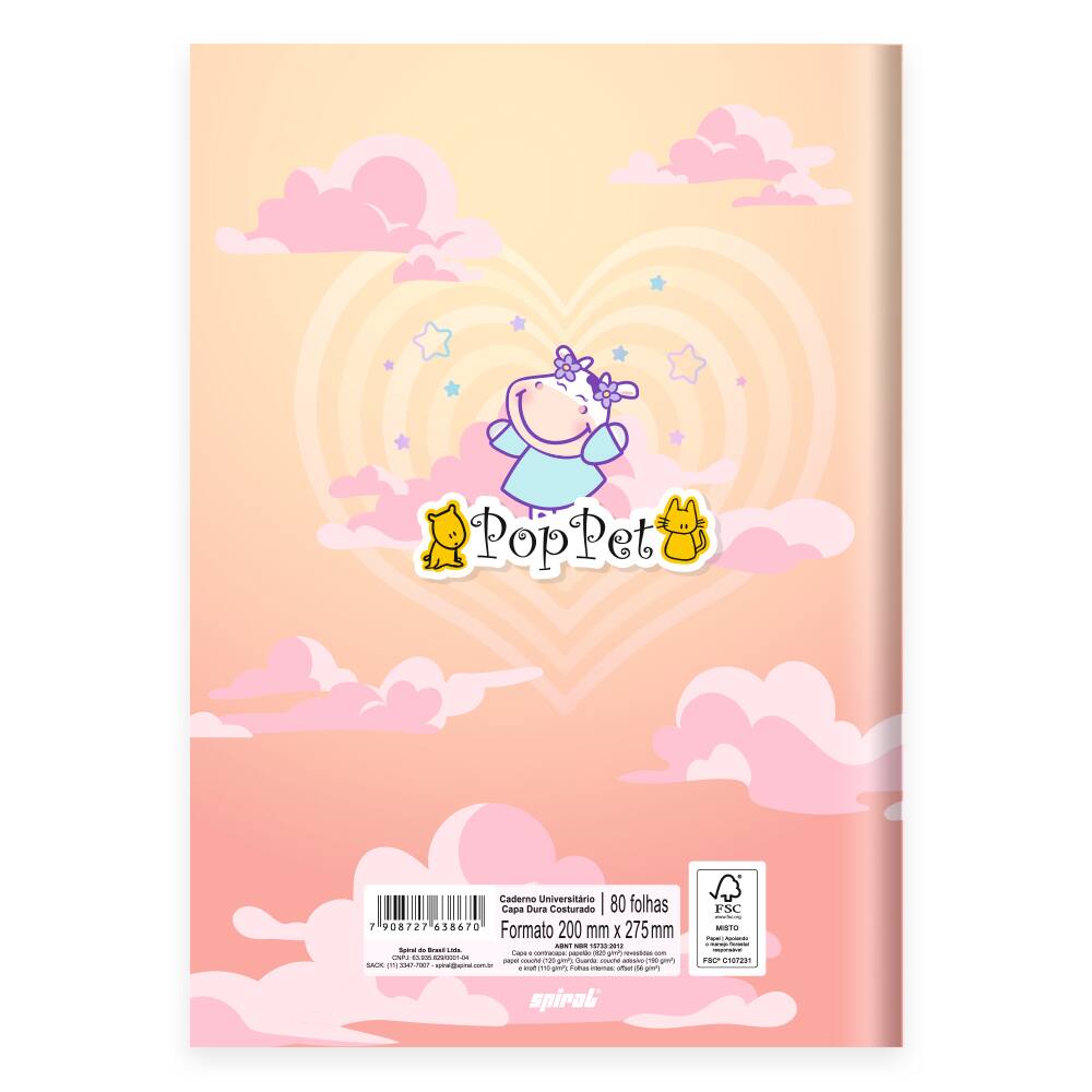 Caderno Universitário Capa Dura, Costurado, 80 folhas, Pop Pet, 2638670, Spiral Pop - PT 1 UN