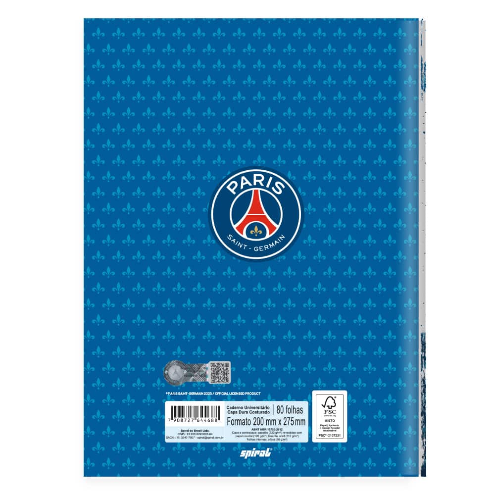 Caderno Universitário, Capa Dura Costurado, 80 folhas, PSG, 2644688, Spiral Psg - PT 1 UN