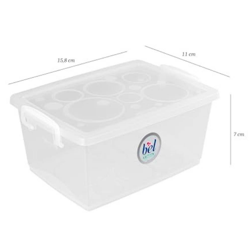 EspecificaçõesCaixa organizadora Feito em plástico Capacidade 650 ml Dimensões A x L x P: 7 x 11 x 15,8cm