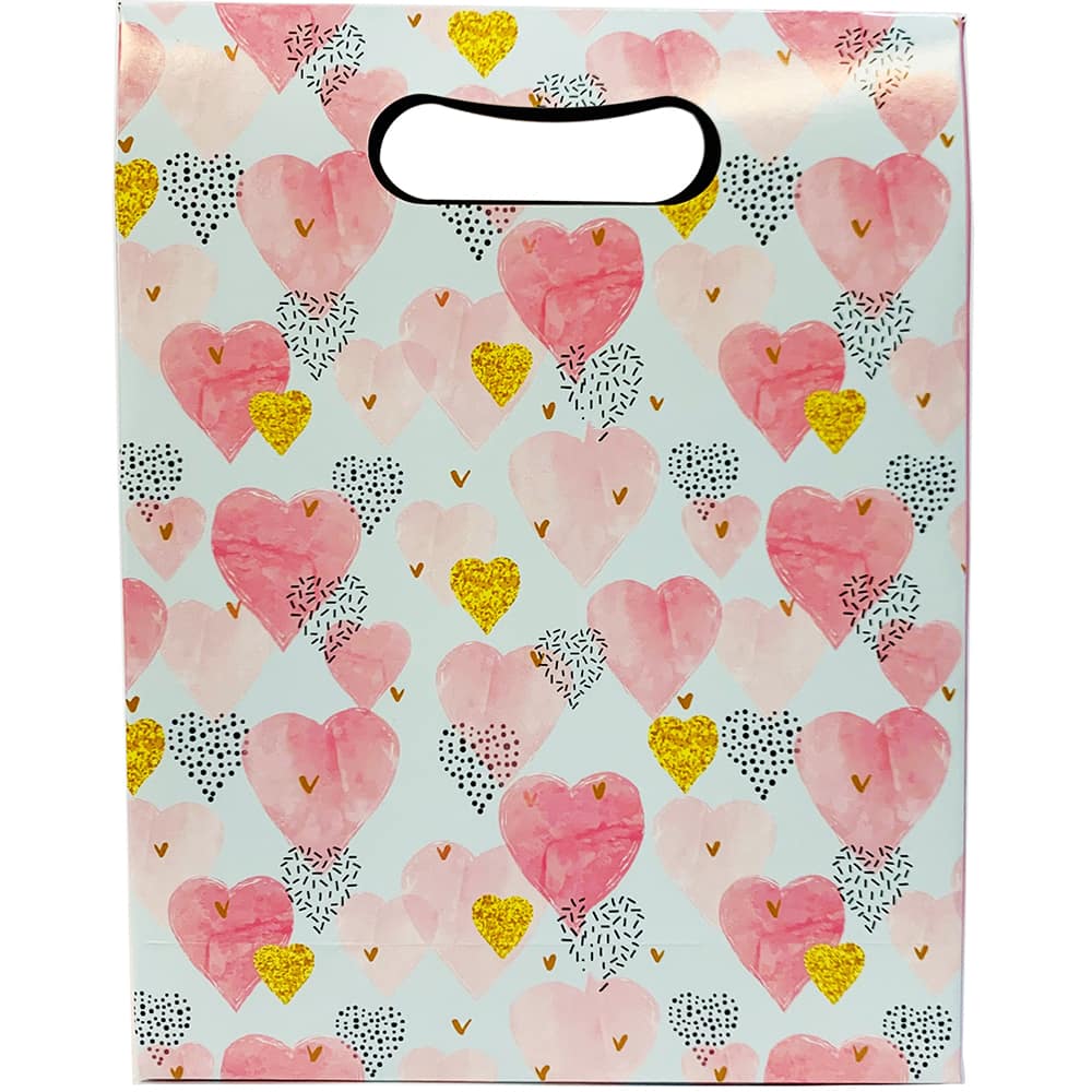 A impressionante estampa de coração em tom dourado não só é um símbolo de amor e carinho, mas também agrega um charme luxuoso que fará toda a diferença. A alça prática permite que você transporte seus itens com facilidade, tornando-a ideal para festas, eventos ou simplesmente como um elemento decorativo em sua casa.