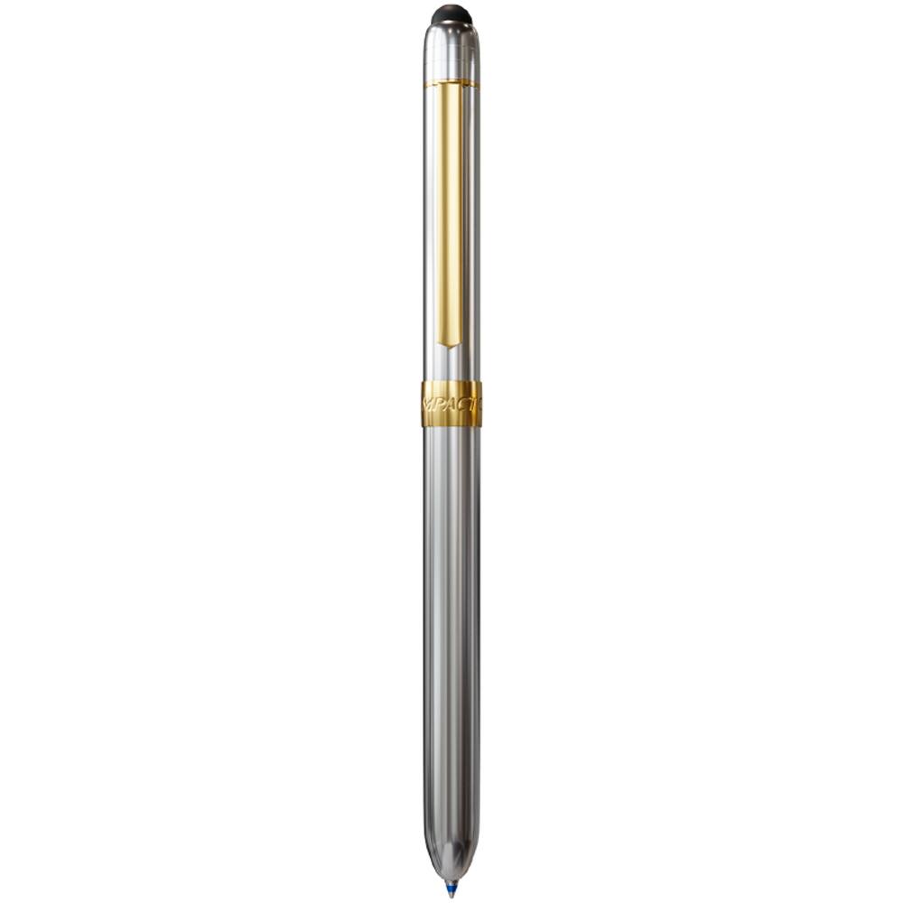 A Tripen Metallic oferece 4 recursos em apenas um produto: ela é caneta esferográfica azul e vermelha, lapiseira e ponta touch para uso exclusivo em tablets e celulares. Combinando com perfeição a elegância e a funcionalidade, é uma caneta multifuncional muito fina, com um mecanismo de ativação macio e preciso.