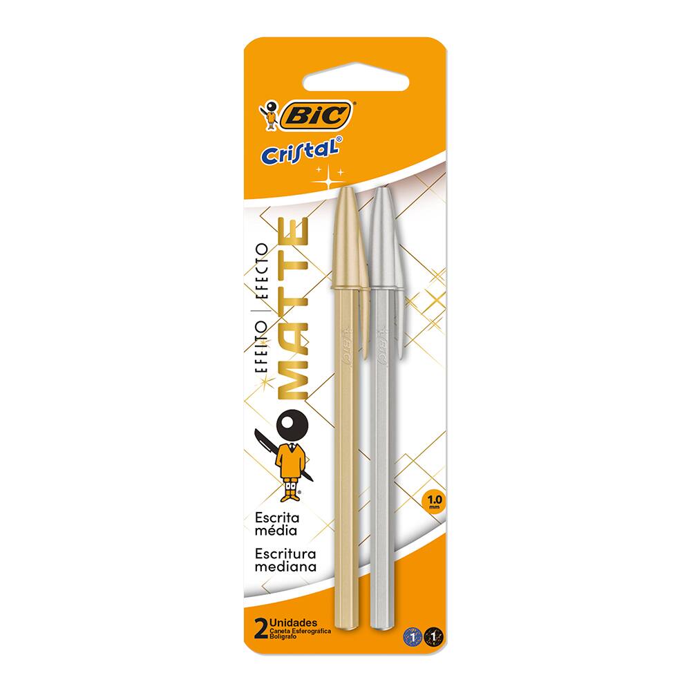 Caneta Esferográfica BIC Escrita Média, Cristal Efeito Matte, Dourada e Prata, Ponta de 1.0mm, 530013, BT 2 UN