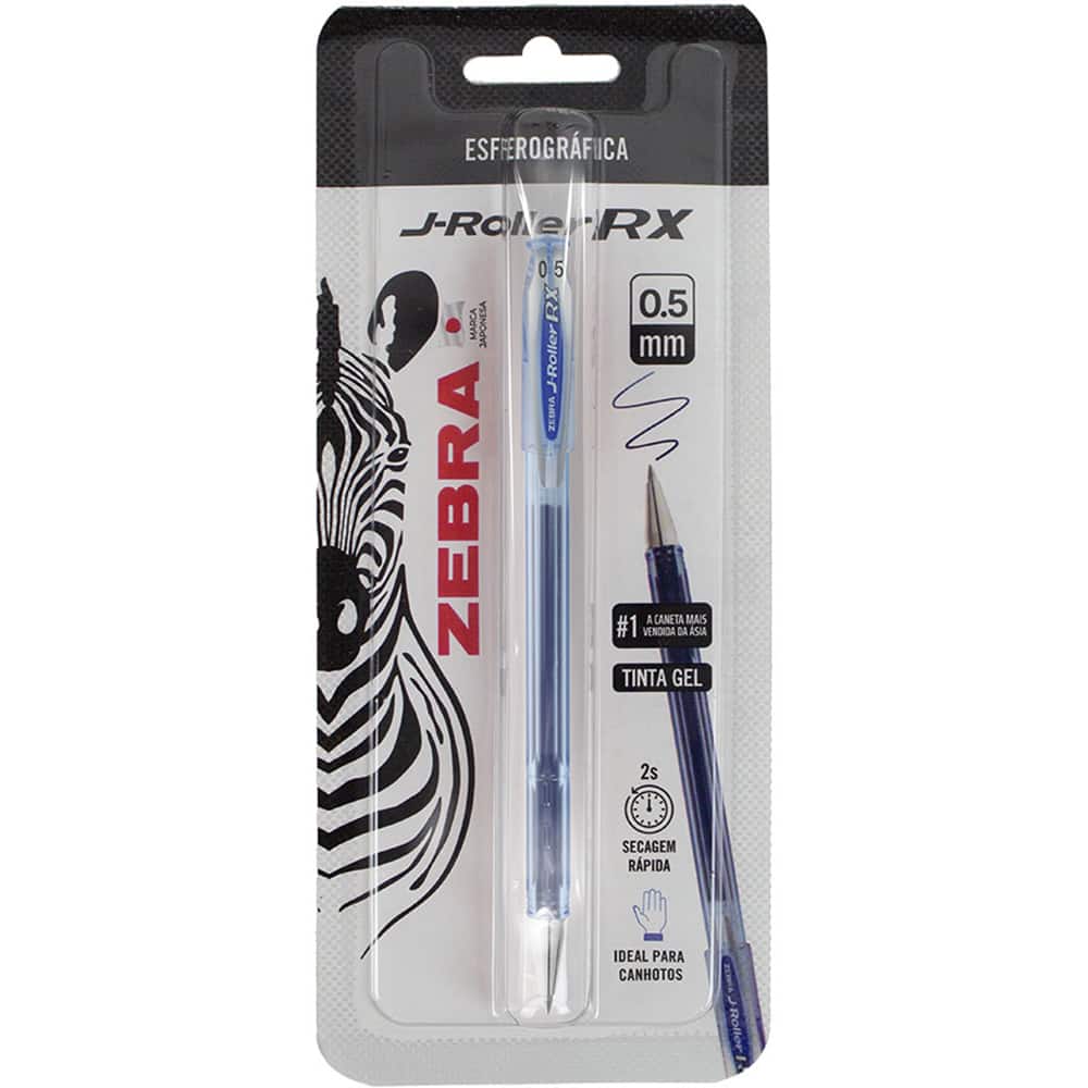 Caneta esferográfica gel, 0,5mm, J-Roller, Azul, 23.043, Zebra - BT 1 UN