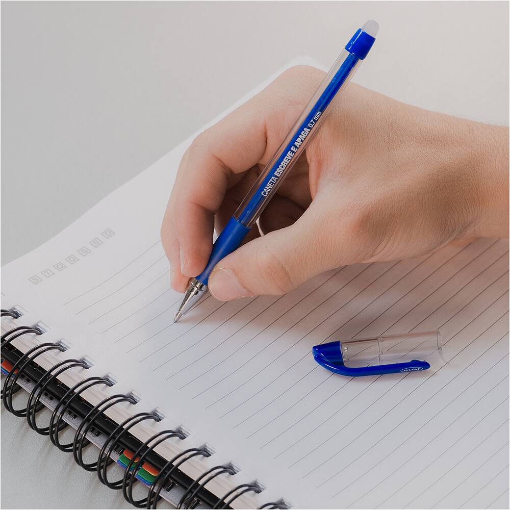 A inovação não para por aí! O destaque desta caneta esferográfica é o seu incrível sistema de escrita e apagamento. Se você cometeu um erro ou apenas deseja alterar uma anotação, basta usar a ponta apagadora e pronto! Transformar suas ideias nunca foi tão fácil e livre de arrependimentos. Torne-se o mestre da sua própria escrita!