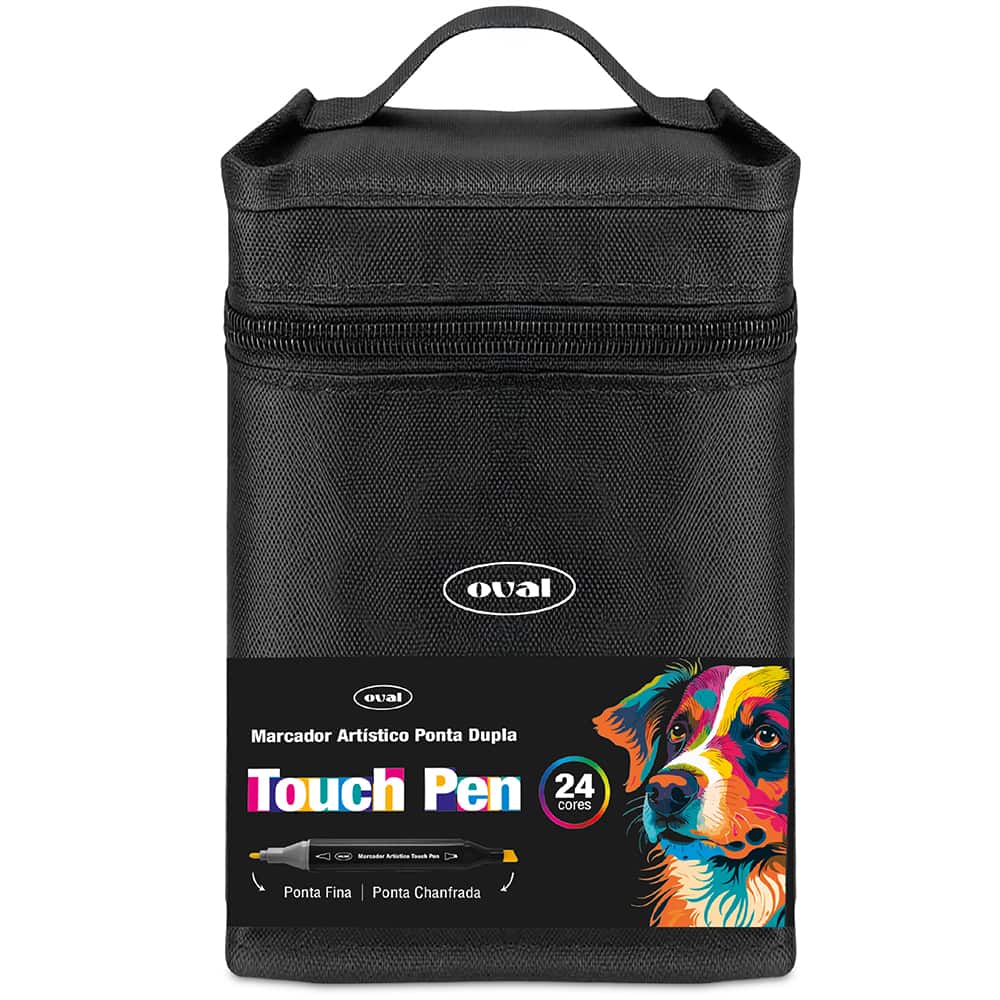 Caneta Marcadora Artística Touch Pen 24 Cores Ponta Dupla (Chanfrada e Fina) com Estojo com Zíper, Oval - BT 24 UN