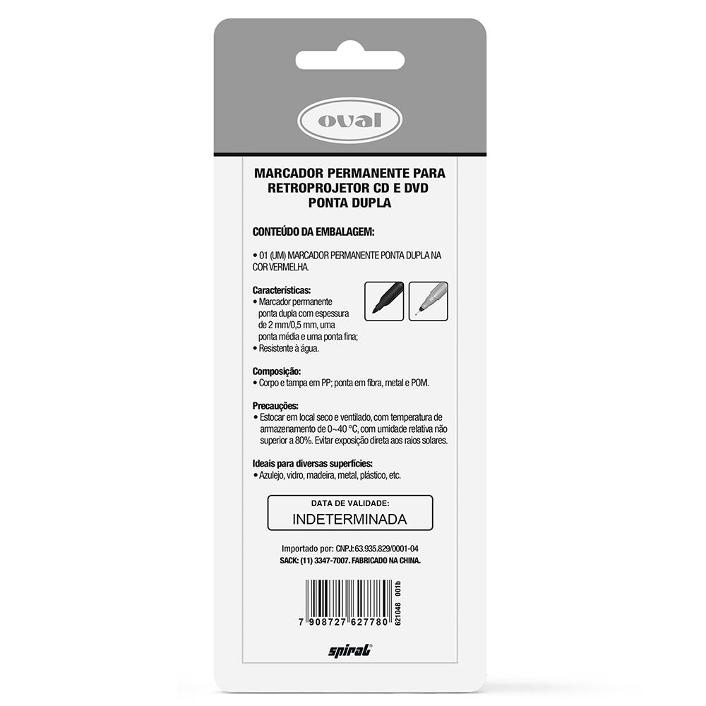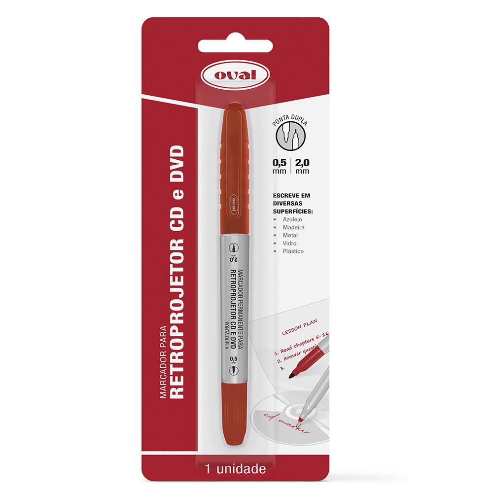 Caneta para retro-projetor CD e DVD, Ponta dupla de 0,5mm e 2,0mm, Vermelha, PY108201, Oval - BT 1 UN