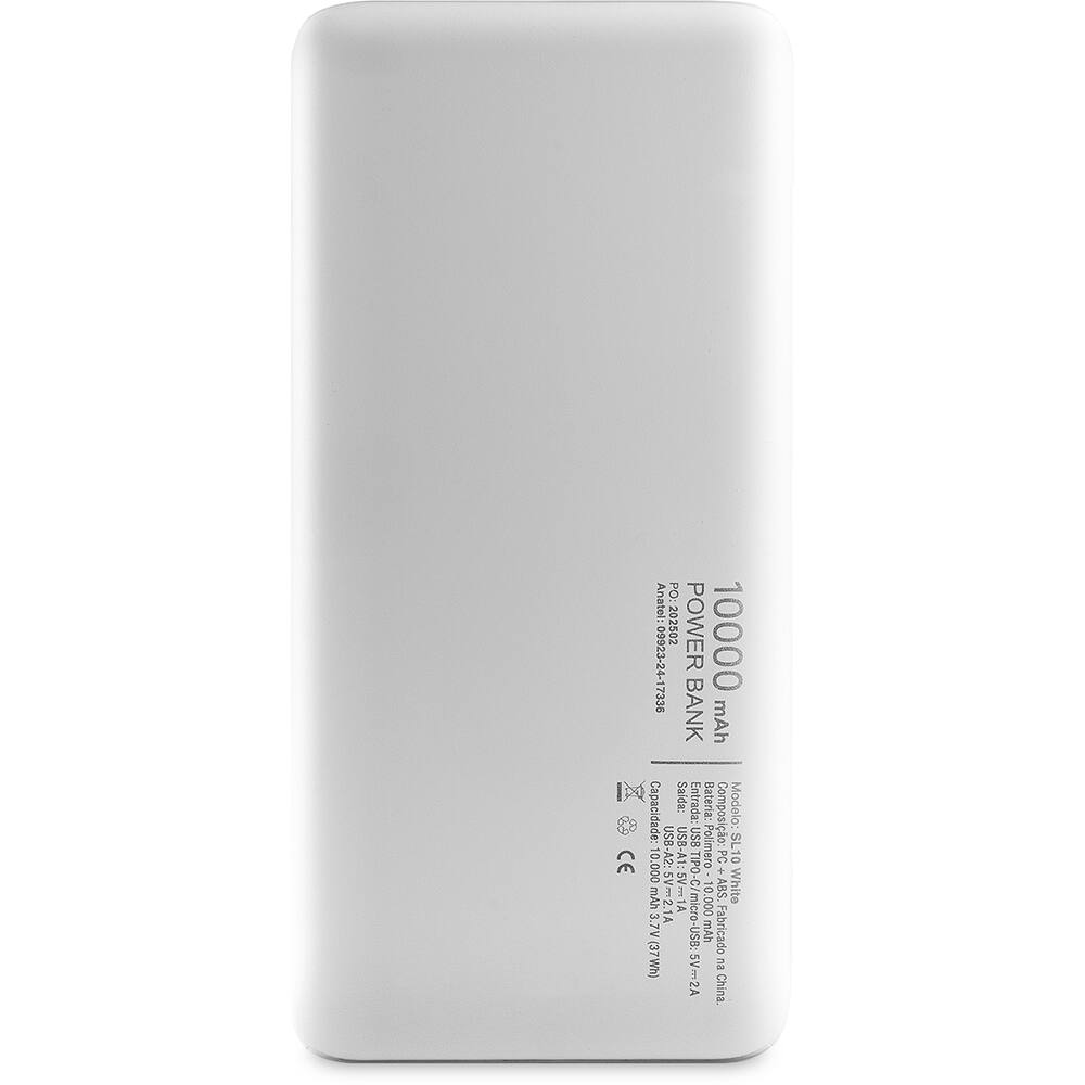 Carregador Portátil Power Bank USB, Fast Charger PD, 10000mAh, Branco, SL10, 2Plug - CX 1 UN