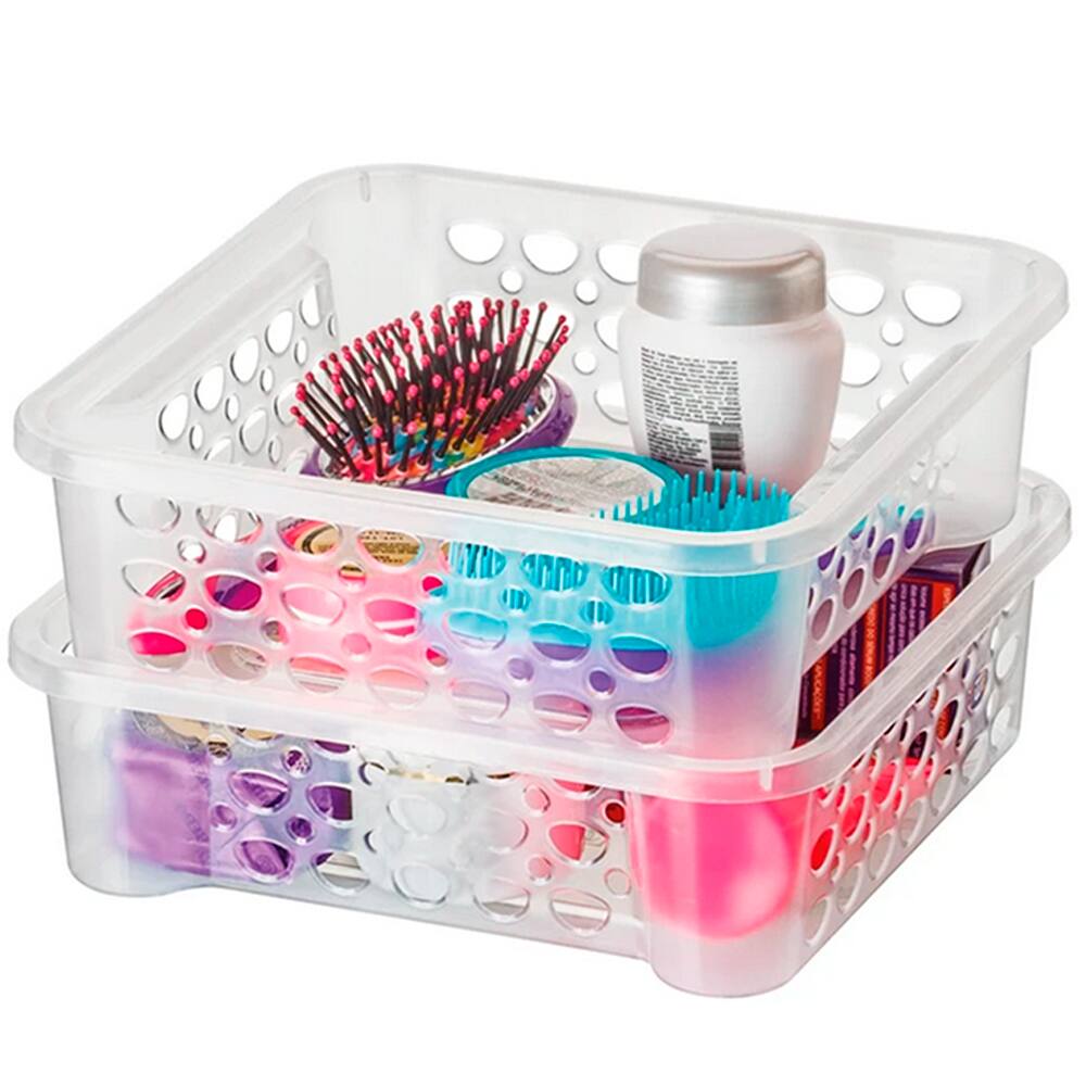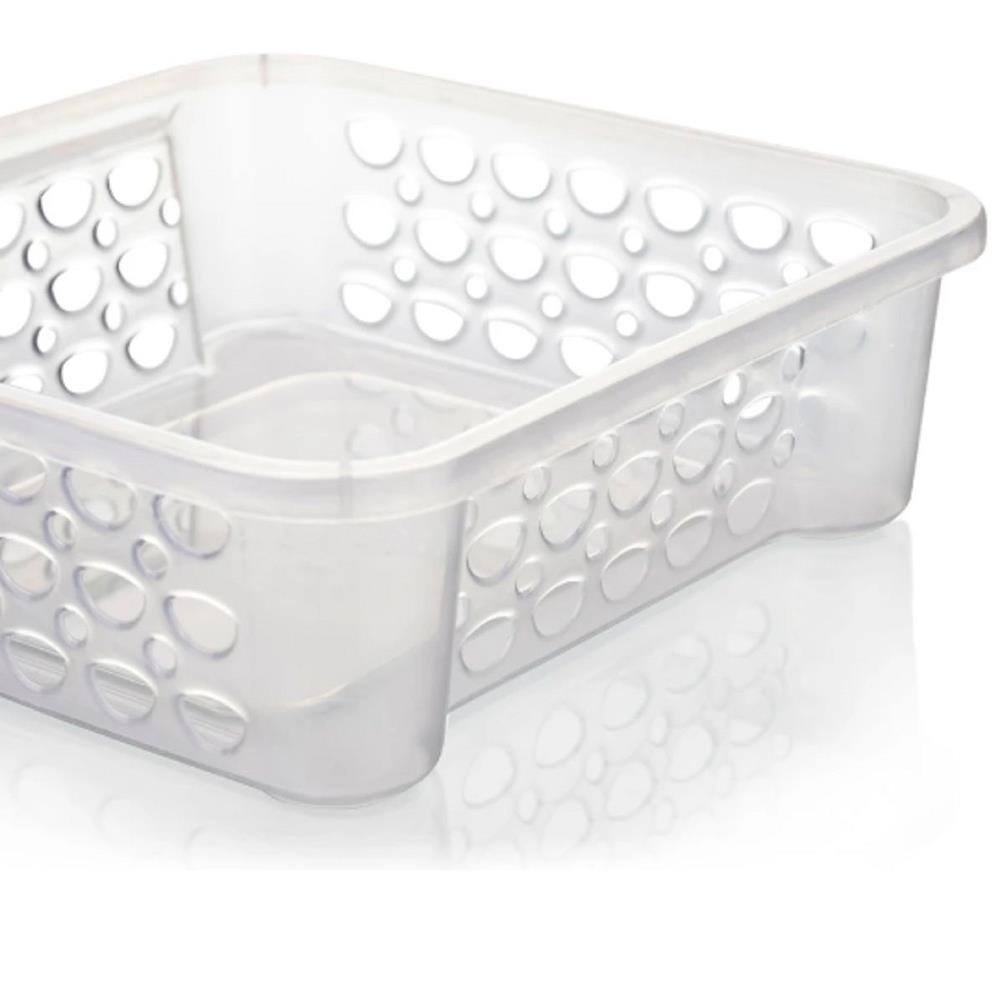 Cesto plástico para organização, possui o encaixe perfeito. Ideal para organizar materiais e ambientes.