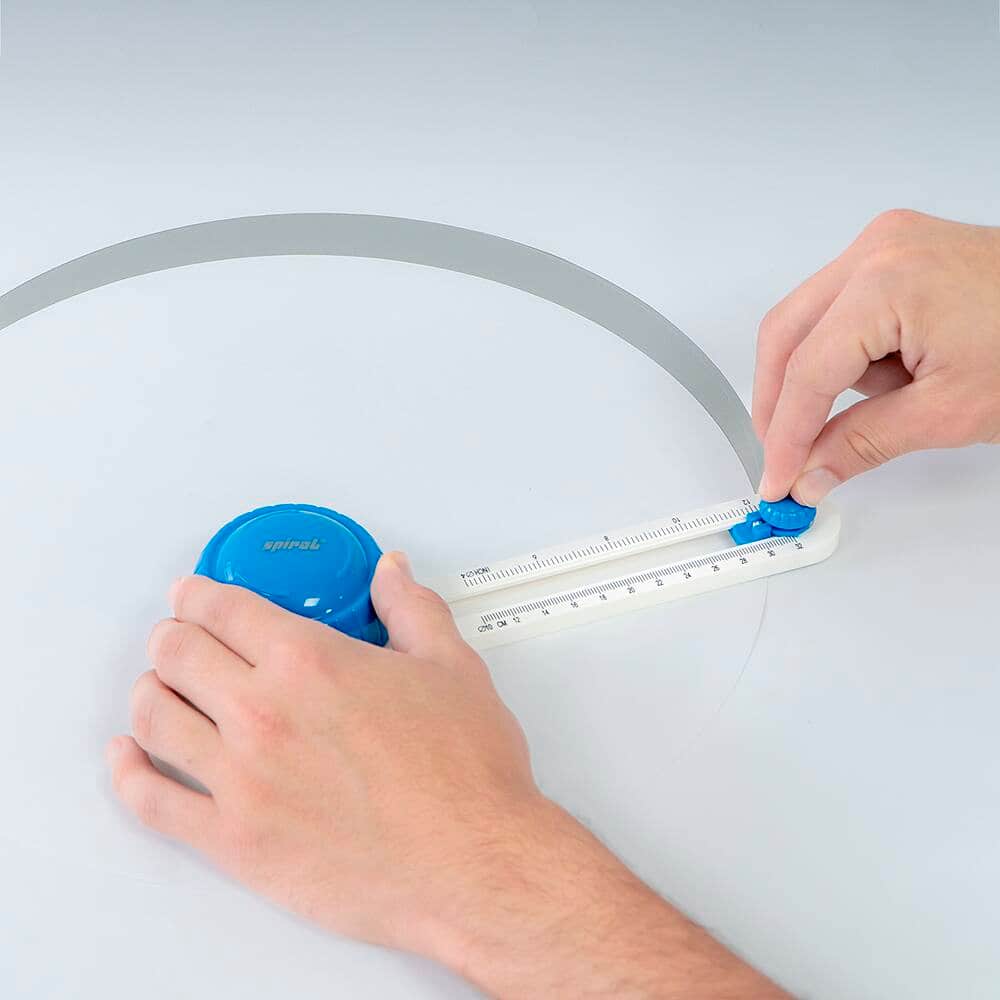 - Corta círculos de 10 cm a 32 cm ou 4” a 12” de diâmetro, com escala milimetrada.