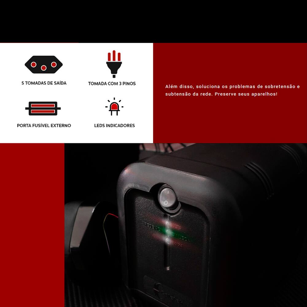 - 5 tomadas elétricas tripolares de saída (padrão N/T/F)